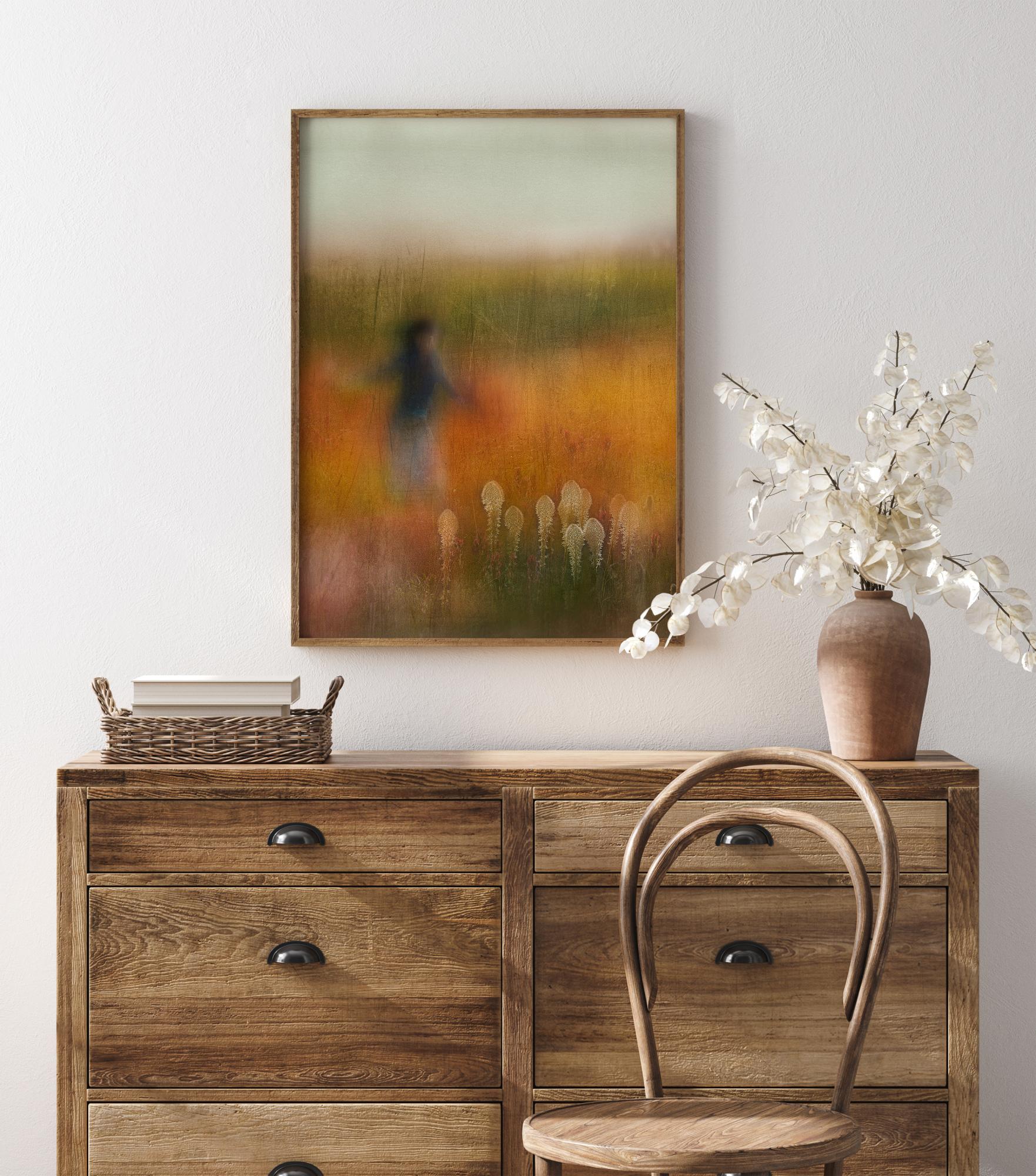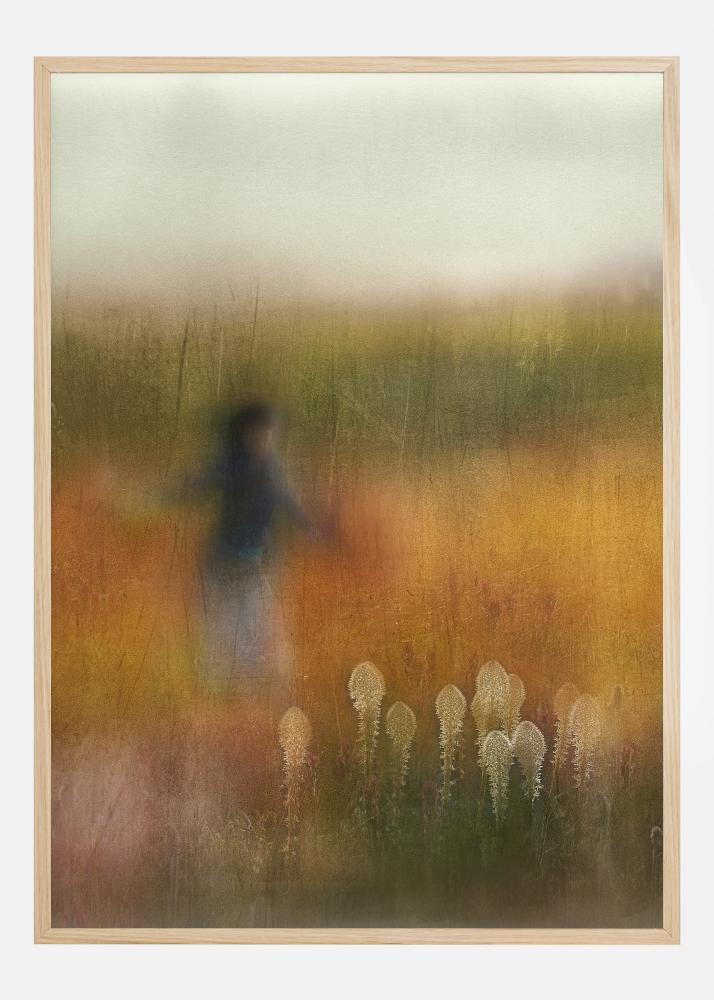 Abstraktne poster tüdrukust pikkade karurohu sees. Pilt näeb välja nagu pehme maal, millel on kollased ja rohelised värvid, mis tekitavad kevadise tunde. Udune tüdruk liigub läbi tugevate pintslitõmmete rohus, et luua liikumist kogu pildis. Riputa see oma koju, et saada suurepärane vestluse alustaja.