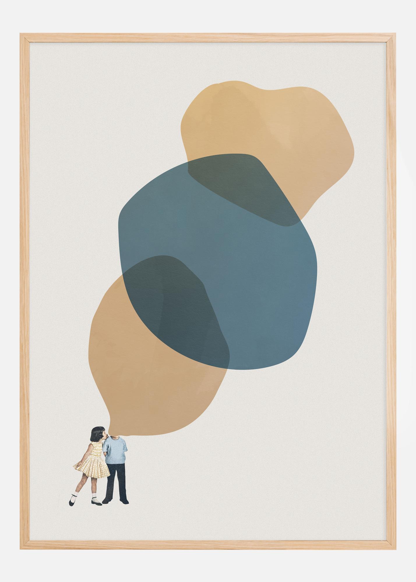 See peen poster püüab intiimset hetke kahe lapse vahel, kes seisavad lähestikku, jagades sosinat. Motiiv kujutab neid lapsefiguure, keda ümbritsevad pehmed ja kattuvad abstraktsed vormid, luues sooja embuse tunde duo ümber. Laste usalduslik interaktsioon on kujutatud delikaatsusega, mis kutsub esile mälestusi lapsepõlve salajasest mängust ja vaiksetest kokkulepetest. See trükk kutsub vaikuse ja saladuste maailma ning muutub kõigi tubade seintele kaasahaaravaks looks.