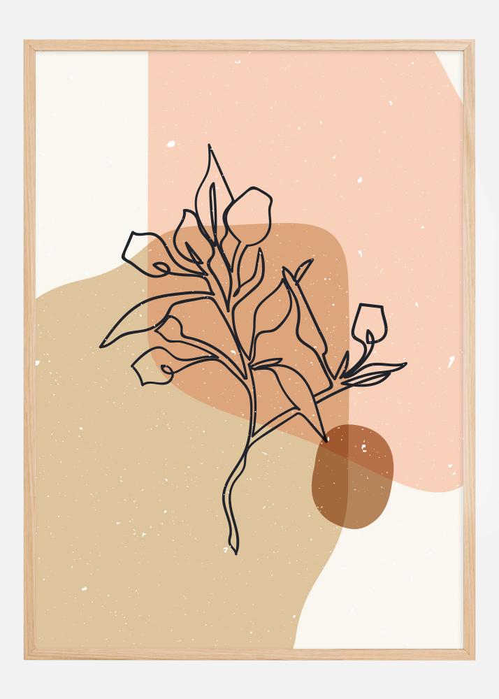 See stiilne ja minimalistlik plakat abstraktsest taimeharust toob esile rahustava värvipaleti, mis annab koheselt rafineeritud ja lõõgastava mulje. Kunstiteos ühendab orgaanilised vormid ja jooned üksteisega kattuvate kujundite seerias, luues sügavuse ja keerukuse tunde, hoolimata selle näiliselt lihtsast disainist.