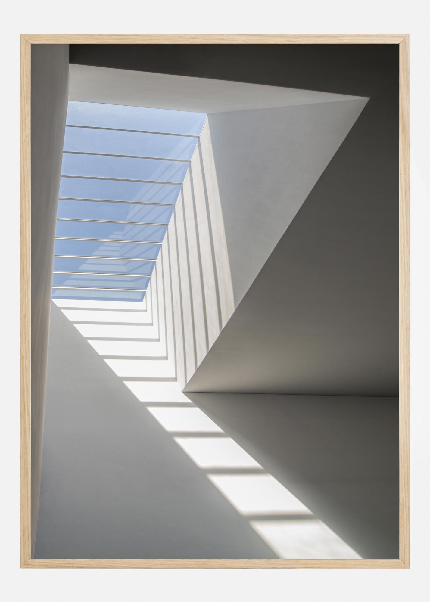 Lihtne ja õhuline plakat heledas valges toas. Vasakul on katuseaken sinise taevaga. Läbi voolav valgus heidab varje, mis näevad välja nagu redel, mis juhatab silma üles valguse poole väljas. Meelita esile heledus pimedas toas selle rahuliku pildiga.