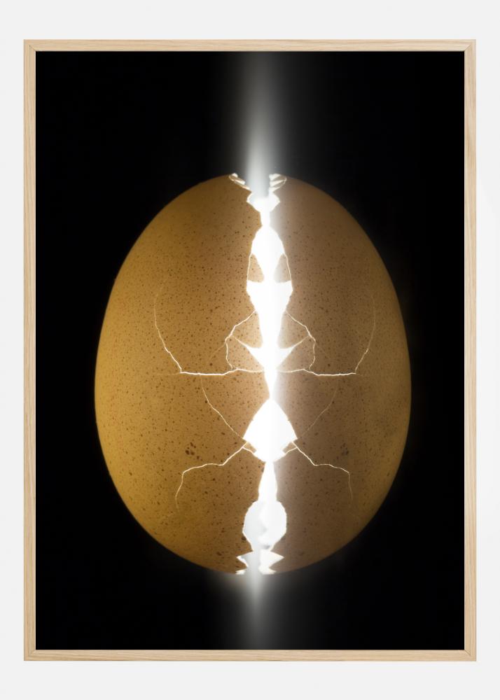 Dramaatiline abstraktne plakat kooruvat munaga, kust kiirgab tugevat valgust ja kogu see toimub mustal taustal. Valgus murdub läbi fantastilises sümmeetrilises mustris. Valguskiired võidavad pimeduse abstraktses, kuid veenvas pildis, mis sobib ideaalselt mis tahes seinale.