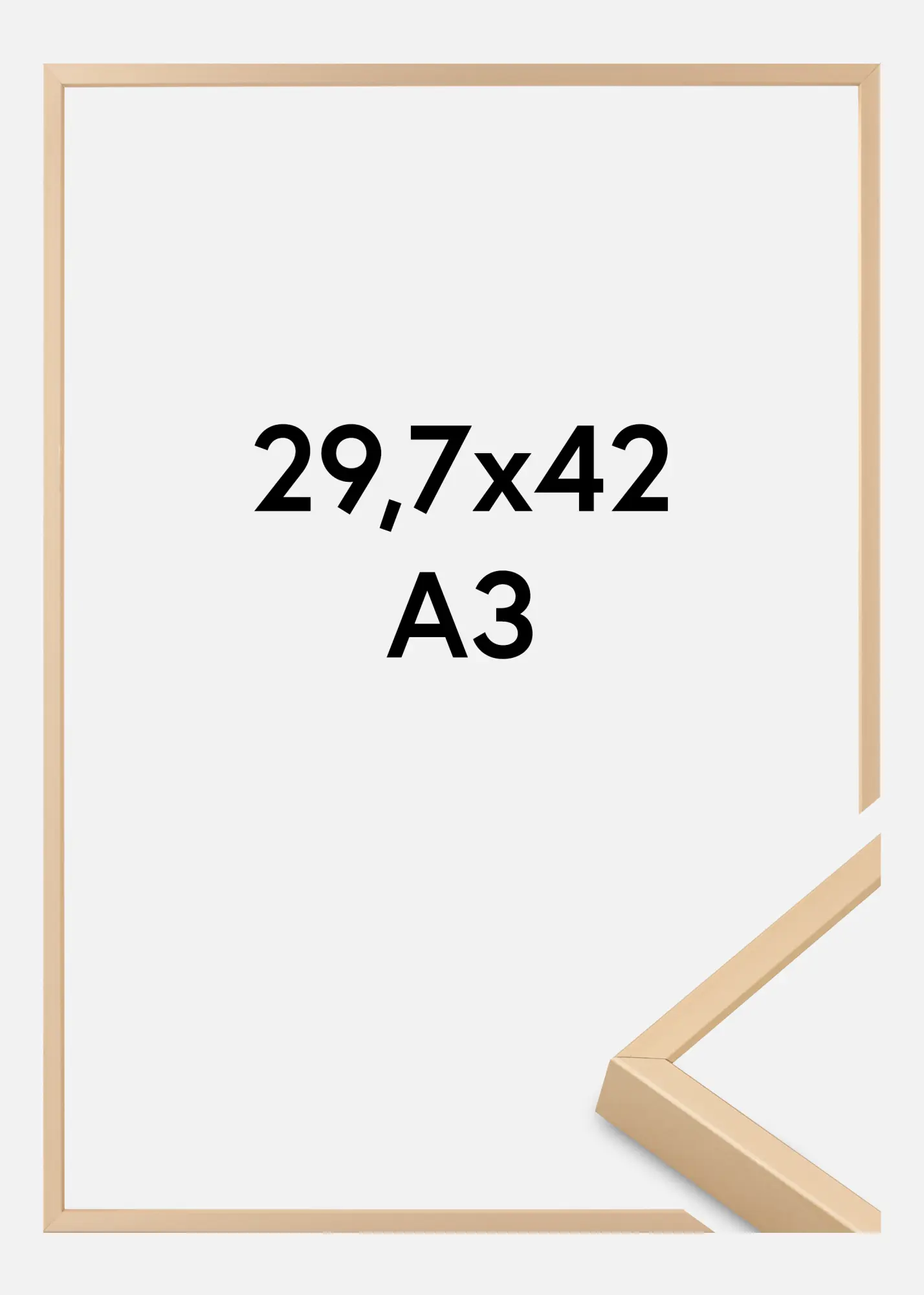 Muuda oma lemmikfotod ja kunstiteosed elegantseteks pilgupüüdjateks selle stiilse messingist pildiraamiga. Suurus 29,7x42 cm (A3) on ideaalne, et esile tuua sinu armastatuimad motiivid. See pildiraam on valmistatud kvaliteetsest alumiiniumist ja sellel on sile, matt pind rafineeritud messingitoonis, mis loob modernse ja minimalistliku mulje.