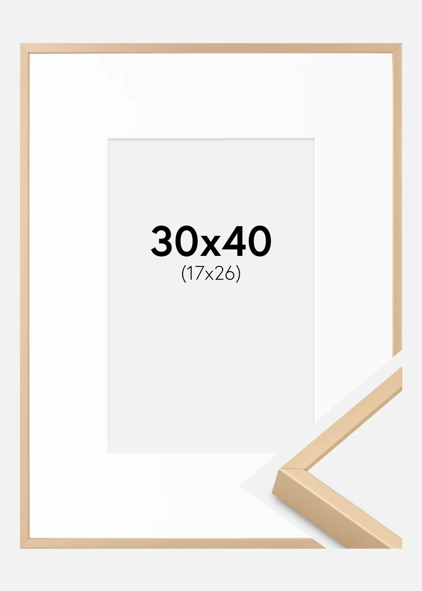 Alumiiniumraam Messing 30x40 cm - paspartuu Valge 18x27 cm