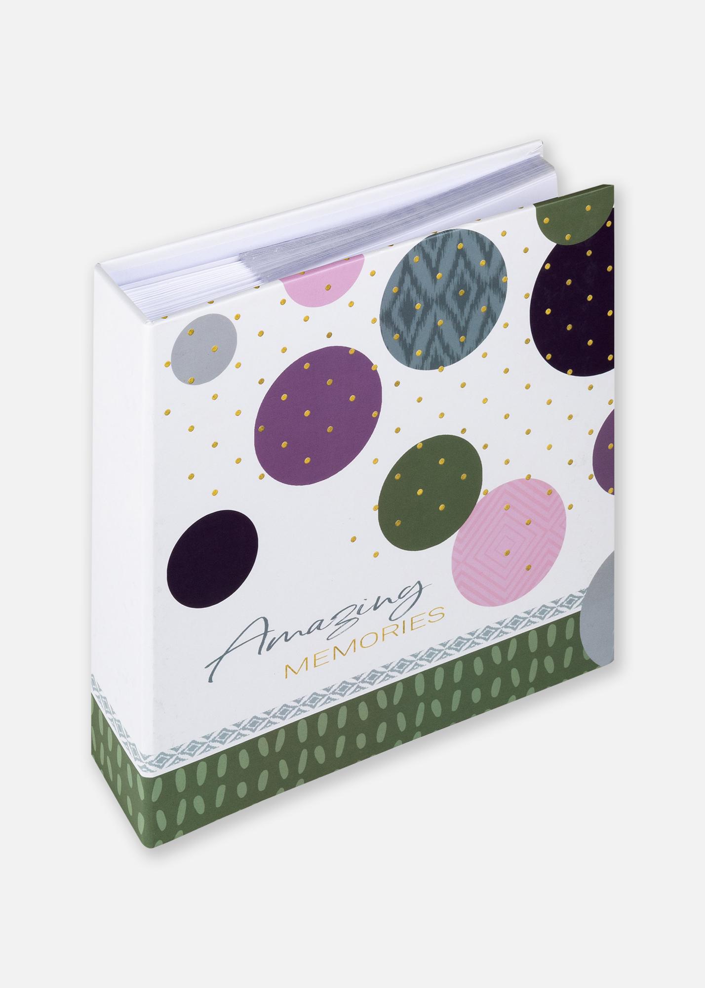 Rõõmsad mälestused väärivad rõõmsat pakendamist! See fotoalbum on väga dekoratiivse ja kauni kujundusega, mis sobib teie kõige kallimate fotomälestuste jaoks. Kaanel on värviline muster, mis koosneb muu hulgas eri värvi ja suurusega ringidest, väikestest võluvatest kullatäppidest – ning pealkirjast „Amazing memories”.