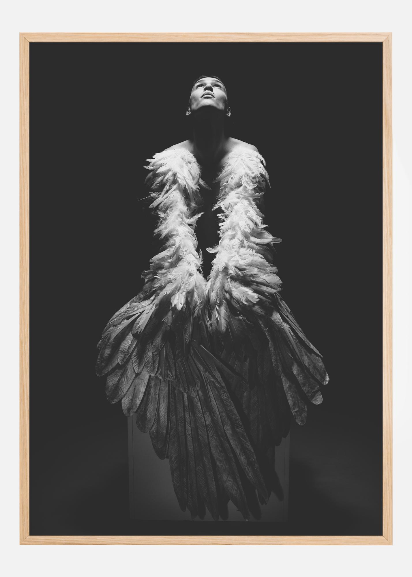 Portreeplakat mehest, kes kannab pikktüüritust, et jäljendada lendamist õhus. Ta seisab mustal taustal ja vaatab üles taeva poole. Üles suunatud prožektor valgustab tema nägu ja õlgu, nii et sa keskendud automaatselt temale, kui vaatad seda dramaatilist teost.