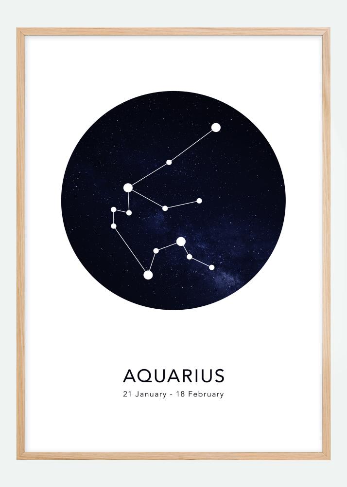 Kingitusena isikupärane maal kellelegi, keda armastad! Sellel stiilselt kindlal plakatil on kujutatud tähtkuju Veevalaja musta ja sinise tähtedetaevale tausta peal. Allosas on nimi koos vastavate kuupäevadega inglise keeles.