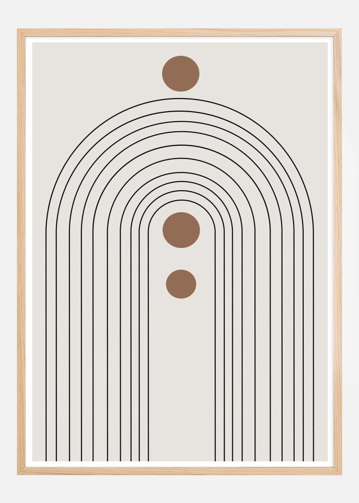 See graafiline plakat kujutab stiliseeritud kaarekujulist motiivi, mis tekitab tunde monumentaalsest arhitektuurist lihtsustatud kujul. Mustad jooned moodustavad poolringikujulise mustri, mis loob illusiooni mõõtmetest ja sügavusest, samas kui asetatud pruunid ringid lisavad orgaanilise kontrasti elementi muidu rangelt geomeetrilise kujunduse vastu. See abstraktne teos on nii range kui ka mänguline, harmoonilise tasakaaluga kurvide ja jooneliste elementide vahel.