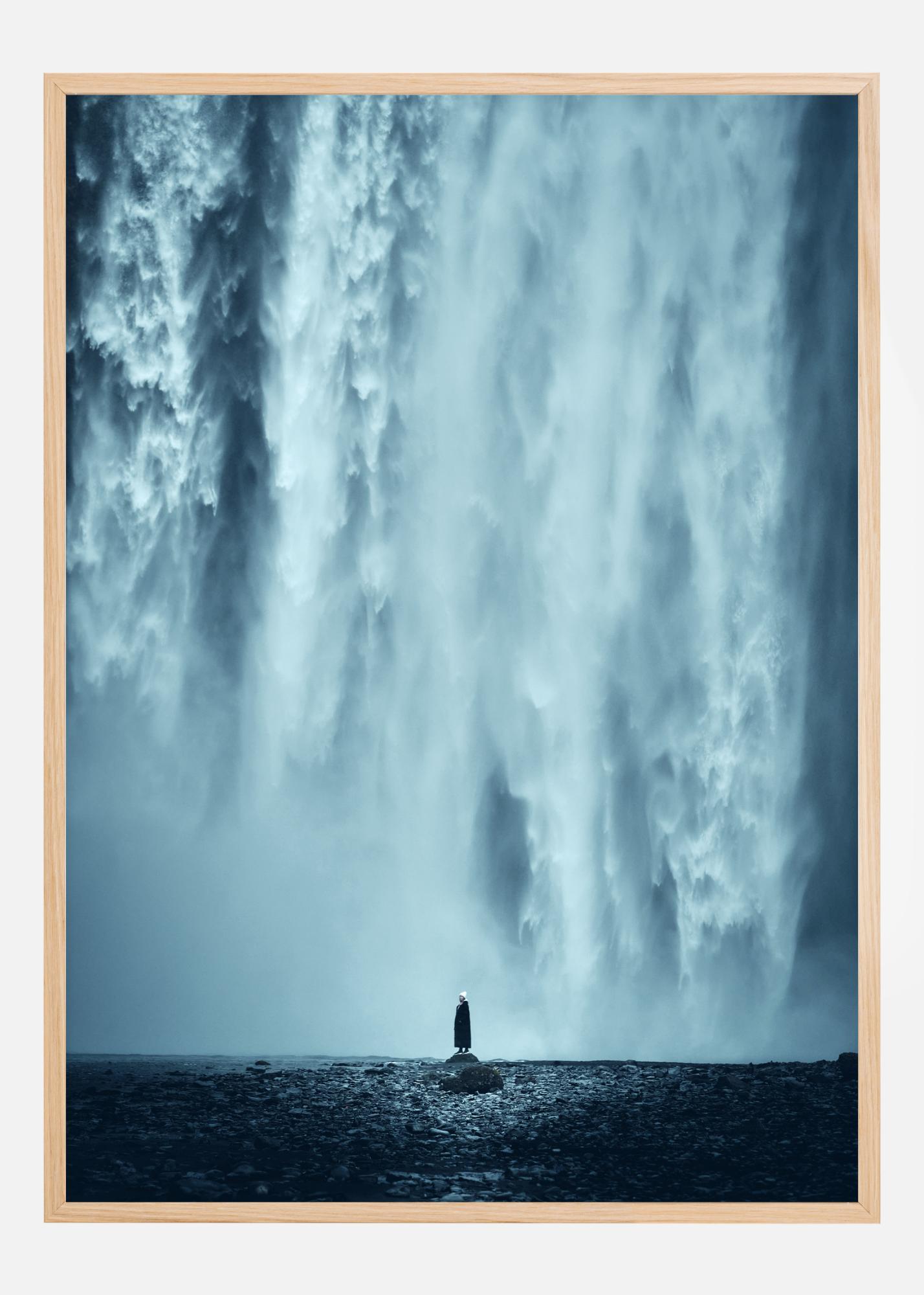 Eepiline plakat, mis näitab looduse suurepärast jõudu läbi juga. Draama täiustub sellega, et pildi keskel seisev väike must kuju vaatab üles voolava vee poole. Sinine ja valge juga tekitab imetlustunde selles suurepärases pildis.