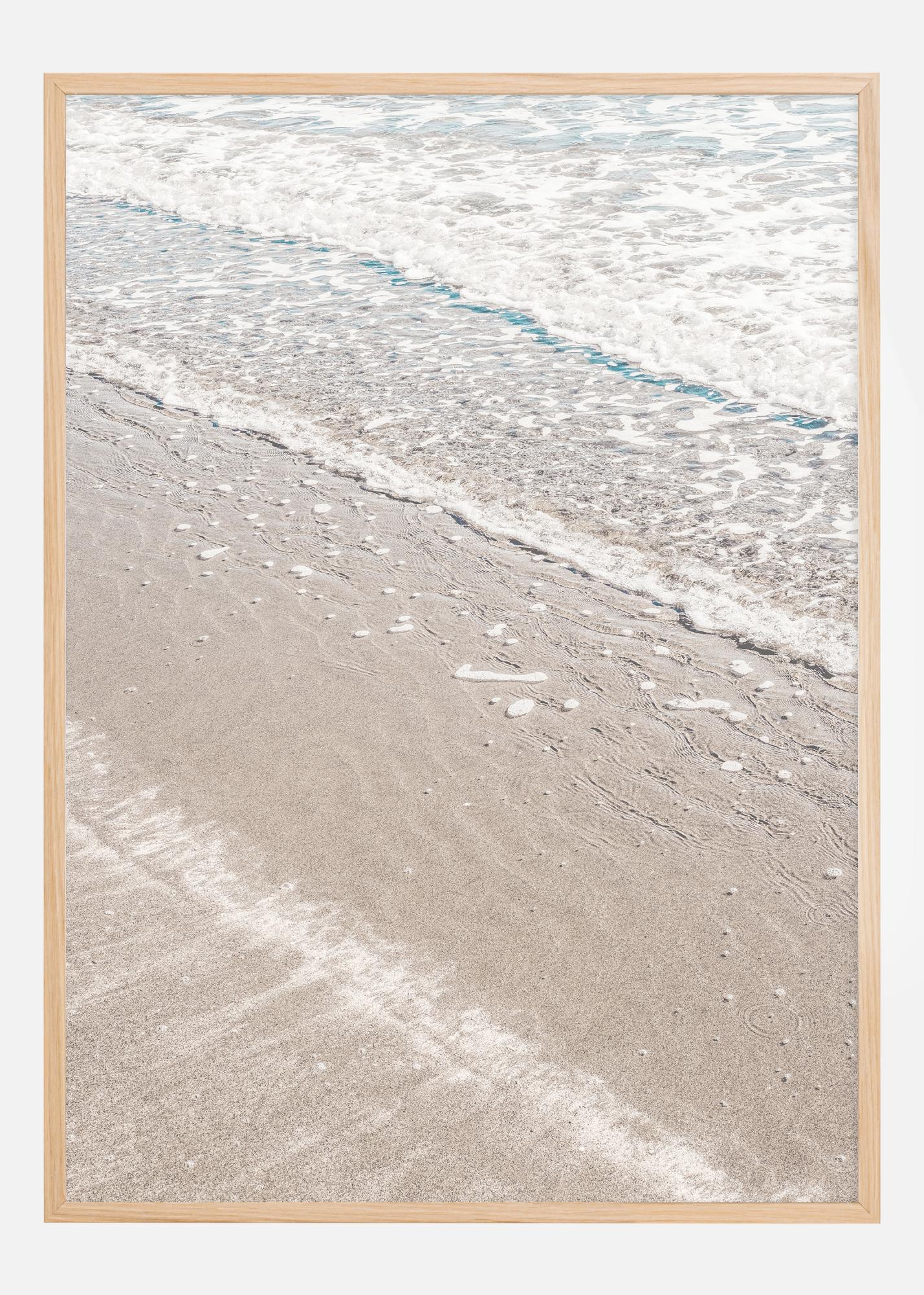 See rahustav poster kujutab rannajoone loomulikku ilu, kus meri kohtub maaga. Peen liiv, millel on merelainete pehmed jäljed, loob tekstuuri, mis on nii lihtne kui ka keeruline. Liivavärvide rahulikud toonid segunevad harmooniliselt mere valge vahuga ja selge türkiisi joonega, kus laine murdub, pakkudes rahu ja selguse tunnet.