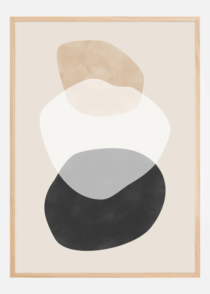 See kunstipilt kiirgab rahulikku ja kaasaegset esteetikat, mis sobib ideaalselt tänapäevasesse koju või kontorisse. Minimalistliku kujundusega, mis koosneb kattuvatest abstraktsetest vormidest, pakub see motiiv harmoonilist tasakaalu pehmete kontuuride ja diskreetsete värvikontrastide vahel. Värvipalett hõlmab beeži, kreemi, halli ja sügava musta toone, luues seinale vaoshoitud, kuid samas julge väljenduse. See lihtne, kuid tõhus kunstiteos on peen esitus Skandinaavia disainist, sobib ideaalselt lõõgastava atmosfääri loomiseks igas toas.