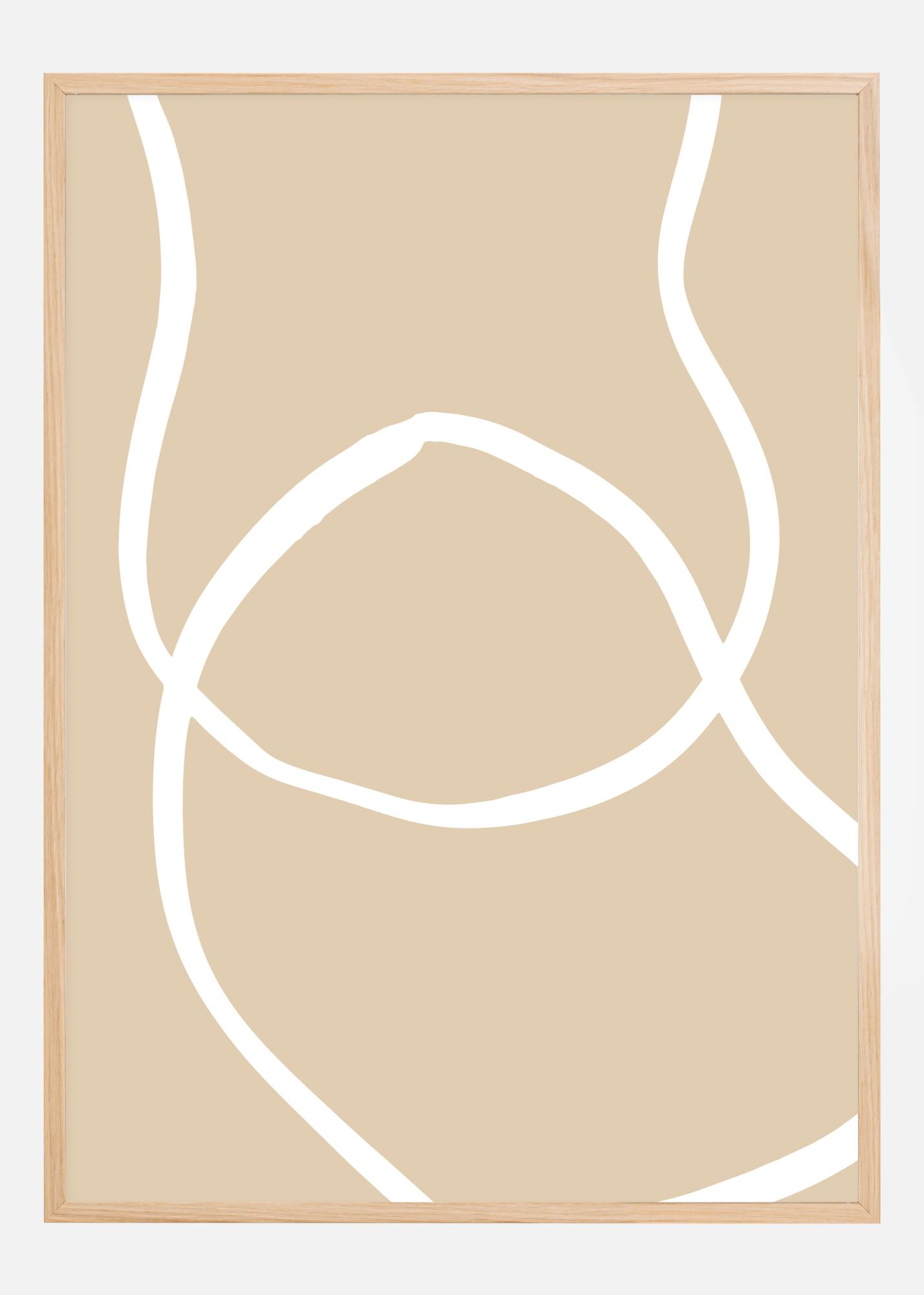 Minimalistlik poster, millel on koorevalged jooned, mis moodustavad kujundeid beežil taustal. Kaarduvad jooned liiguvad üle tüki, keskpunktis ristumisega, mis juhib pilku kattuva ringikujulise vormi poole. Julge avalduse tegemiseks saate selle pildi riputada hele-sinisele seinale, et rõhutada beeži.