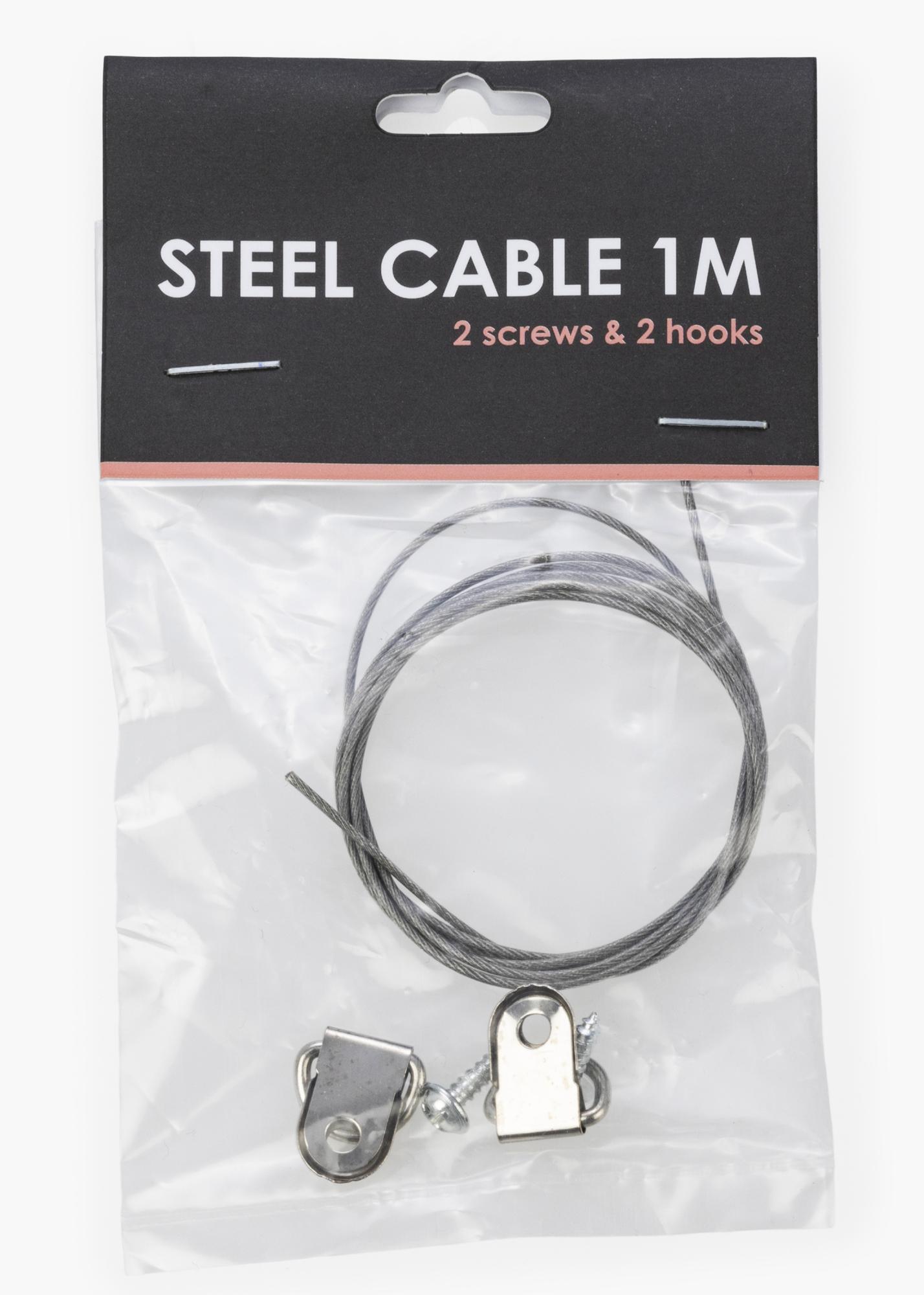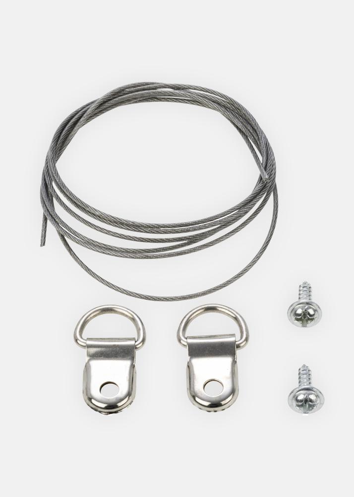 Selle täieliku komplektiga on sul kõik vajalik, et kinnitada terastross oma tahvlile: 1 meetri pikkune terastross, 2 kruvi ja 2 silmust/konksu. Terastross on galvaniseeritud ja vastupidav, kuid ainult 0,7 mm paksune, mis muudab selle töötamise lihtsaks, kuna seda saab soovi korral painutada ja keerata.