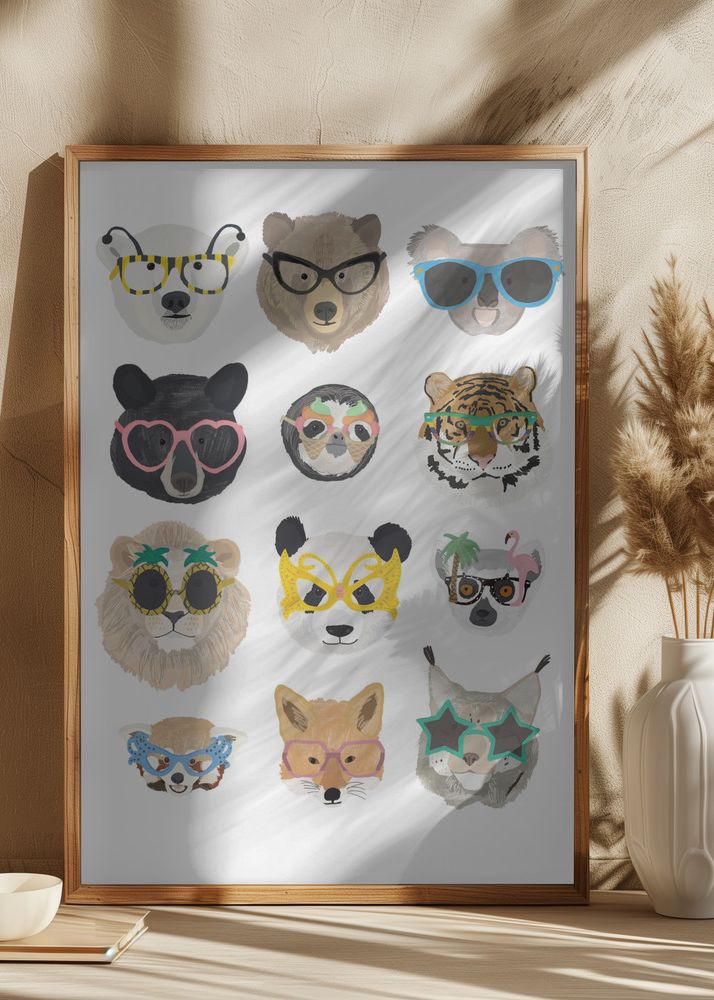 Big Cats in glasses print Poster