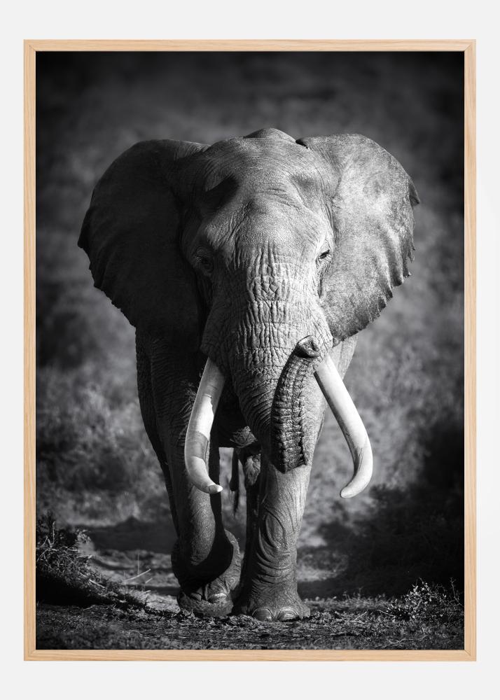 See mustvalge print ei ole mitte ainult maailma suurima maismaal elava looma kujutis, vaid ka austusavaldus loodusmaailma suurepärasusele. Kontrast elevandi dramaatiliste tekstuuride ja pehme tausta vahel muudab selle postri lihtsaks pilgupüüdjaks igas toas, samal ajal kui see on ka peen meeldetuletus meie planeedi põnevast metsikust elust.