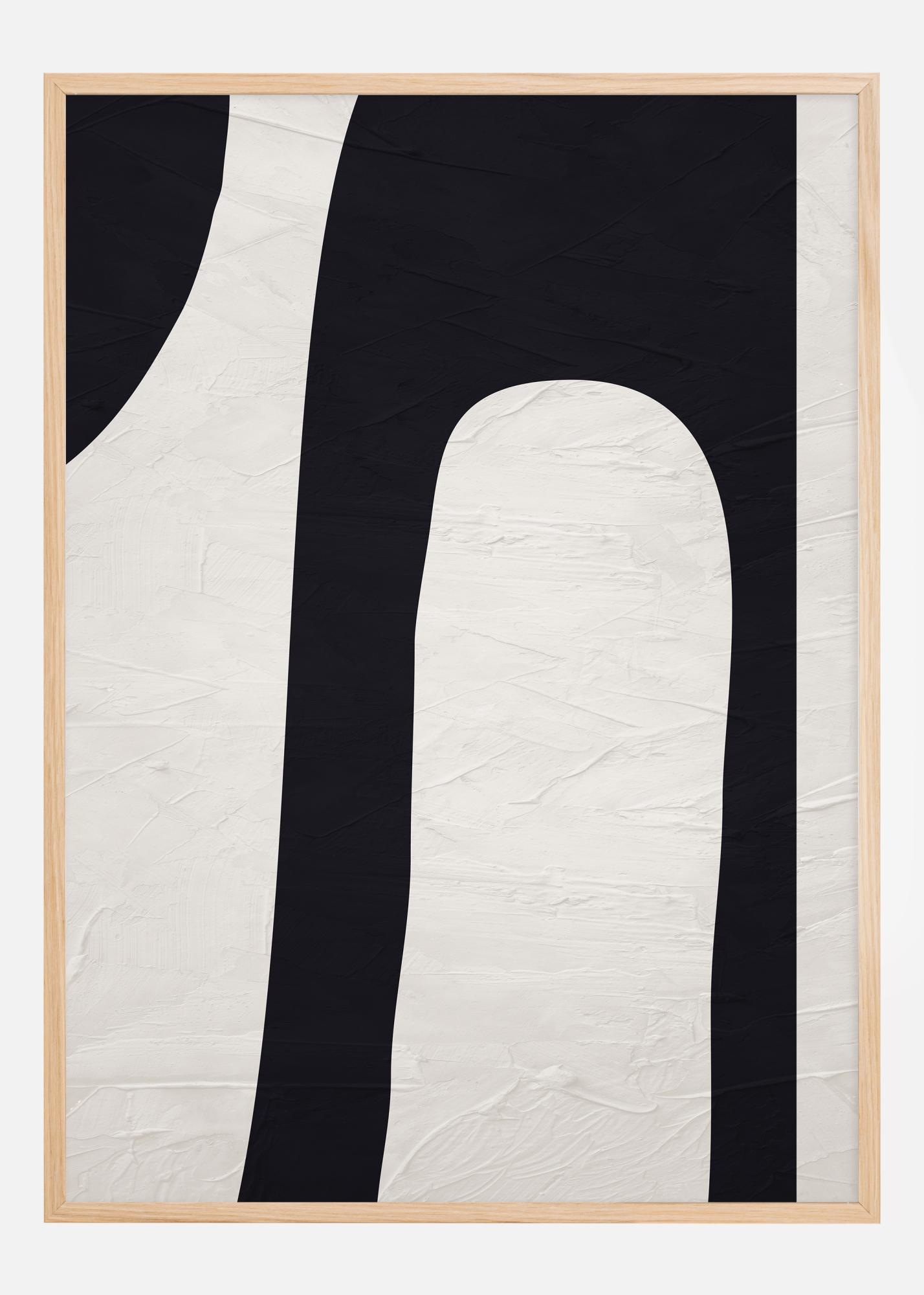 See kunstiposter kujutab endast abstraktsete mustade joonte mängu kreemika valge tausta vastu, luues tugeva ja visuaalselt stimuleeriva kontrasti. Disain mängib ruumi ja perspektiiviga, kasutades mustade joonte kuju, et vihjata mõõtmetele ja sügavusele. See on minimalistlik, kuid võimas pilt, mis tasakaalustab kaasaegse kunsti ja graafilise disaini vahel.