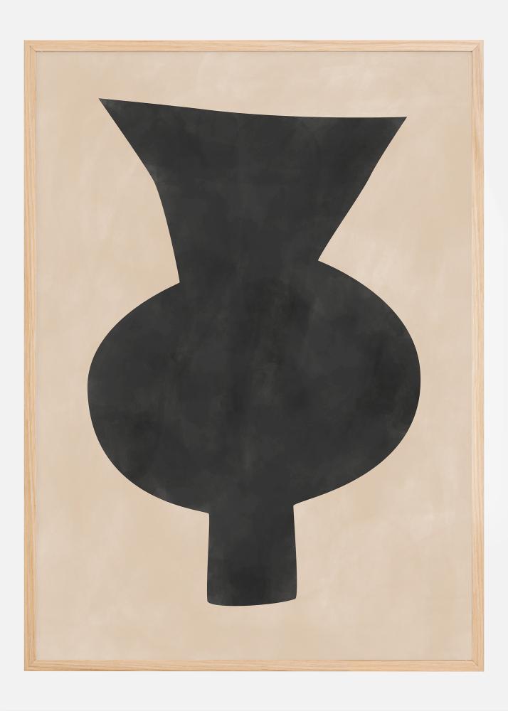 See plakat püüab kaasaegse abstraktse kunsti olemust oma julge ja lihtsa musta vormiga, mis meenutab vaasi või skulptuuri, pakkudes võimsat visuaalset efekti neutraalsel taustal. Kontrast sügava musta ja rahuliku beeži vahel muudab selle täiuslikuks plakatiks inimesele, kes soovib sisekujunduses teha stiilse, kuid kindla avalduse. Vormide dünaamiline ja mõnevõrra orgaaniline siluett loob nii liikumise kui ka vaikelu tunde, kutsudes esile refleksiooni ja tõlgendust.