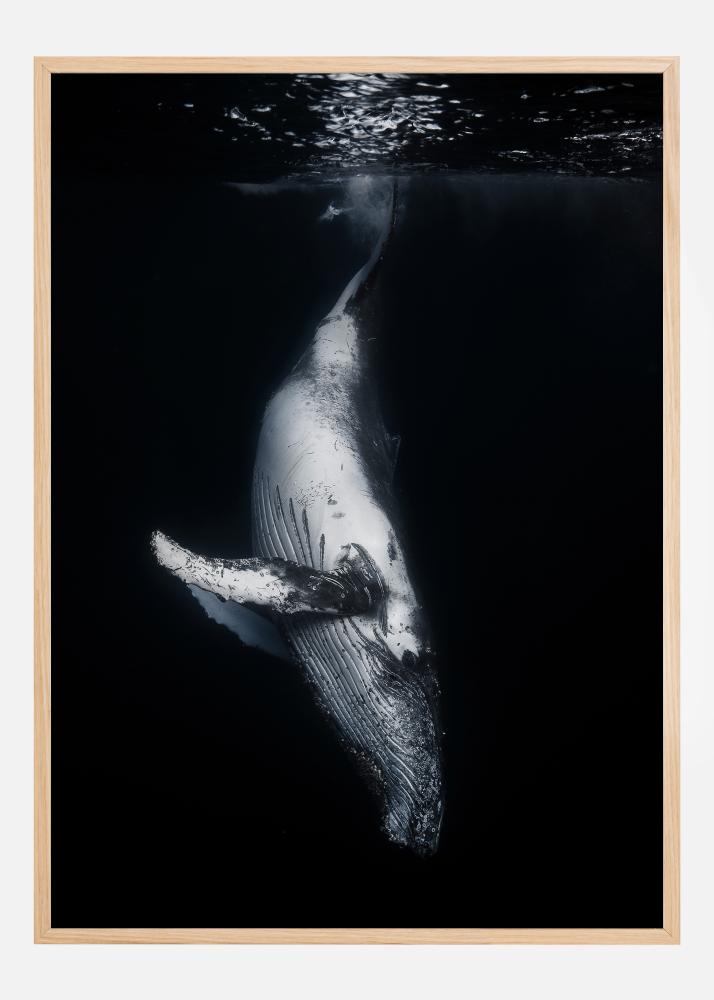 Selles kujutatud posteril on kujutatud küürvaala, kes liugleb graatsiliselt läbi tumedate vete, pilt, mis püüab merelise elu olemuse. Kontrasterikas mustvalge kompositsioon toob esile vaala tekstuuriga naha ja selle keha elegantsed kontuurid, luues võimsa pildi vaigist ja graatsiast pinna all.