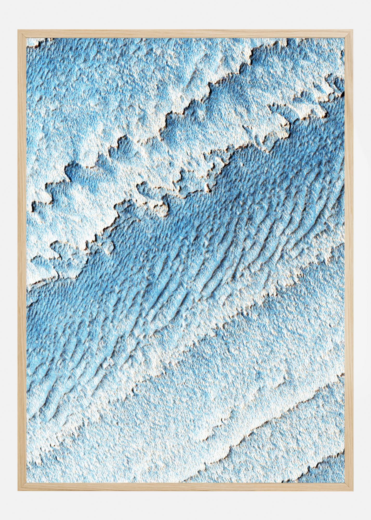 Õhufoto plakat lainetega, mis löövad vastu randa. Igas laines valged vahused jooned, samal ajal kui vesi loksub ja läheneb maale. Helerohelised ja asuurvärvilised alad muudavad selle julgelt pildiks. Sobitades oranži seinaga, saavutate nende täiendavate värvide kaudu täieliku efekti.