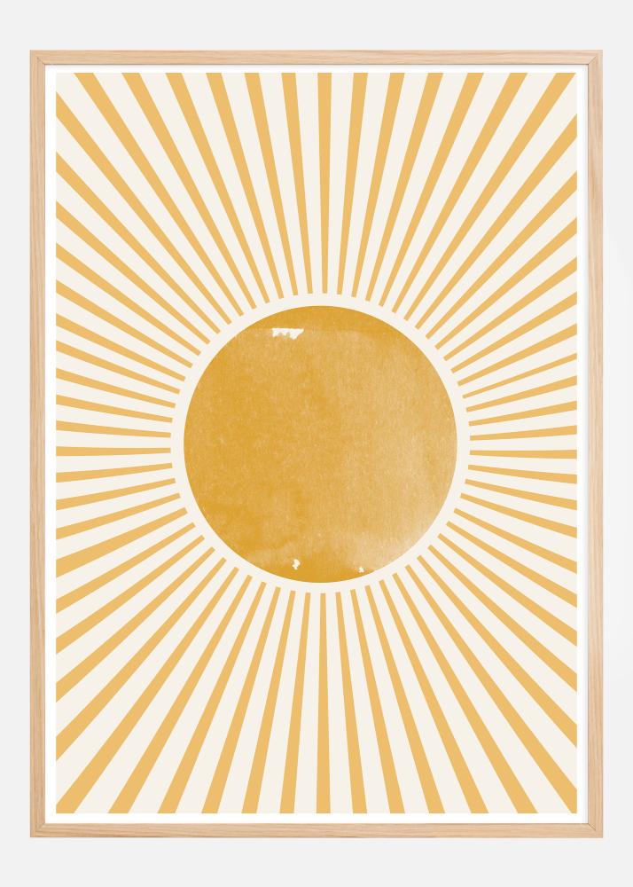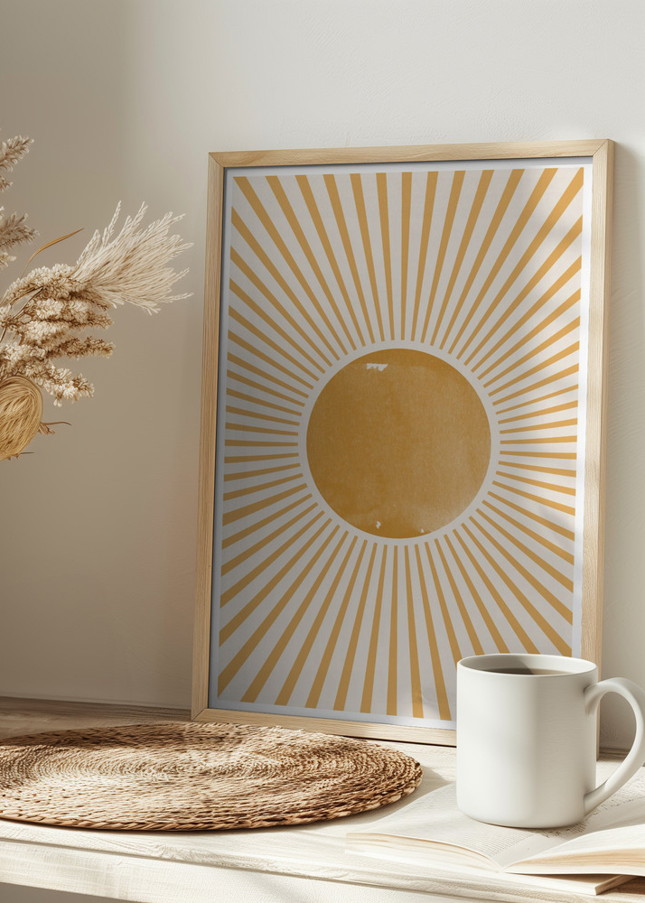 Seda elavat plakatit kutsub esile särava päikese tunne, kuna tema kiired kuldsetes toonides ümbritsevad keskmist kollast ringi pehmel valgel taustal. Disain on inspireeritud boheemlaslikest ja geomeetrilistest mustritest, mis koos loovad pildi päikese soojusest ja energiast. Soojad värvid ja särav muster on loodud, et anda rõõmu ja positiivsuse tunnet.