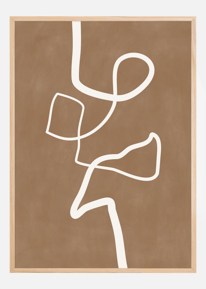 See print kutsub esile mõtisklust vormi ja joone ilu üle, kus kontemplatiivne pruun väli loob maakera lähedase ja köitva tausta esilekerkivale valgele joonele. Ainuke joon kutsub vaatajat uurima ruumi ja vormi suhet, samas kui selle katkematu olemus pakub ühtsuse ja konteksti tunnet. Selle pruunide ja valgete toonide paletiga on see plakat austusavaldus lihtsusele ja toob esile rahu ja selguse, mis on sageli üleerutatud maailmas haruldane. Seda tüüpi kunstiteos on ideaalne neile, kes soovivad tuua oma koju või tööruumi meeleoluka ja mõtlemapaneva elemendi.