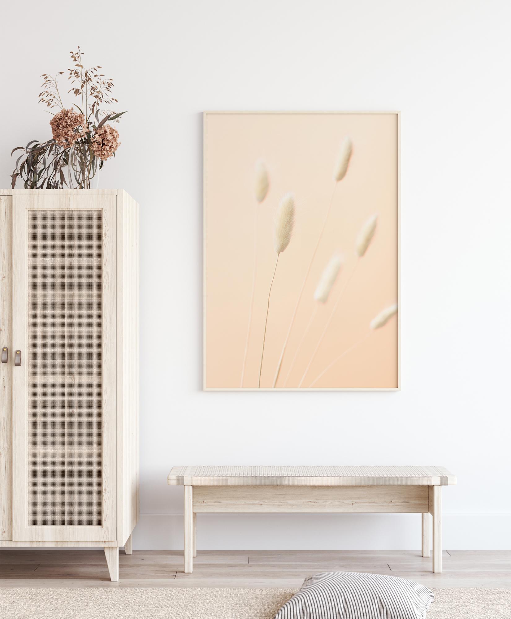 Lihtne lilleplakat vähese jänesesabaga kannus. Kerged õhulised varred maalivad peaaegu seina nende taga. Need peened pastellvärvid töötavad suurepäraselt koos teiste värvidega või isegi täiesti valge seina taustal.
