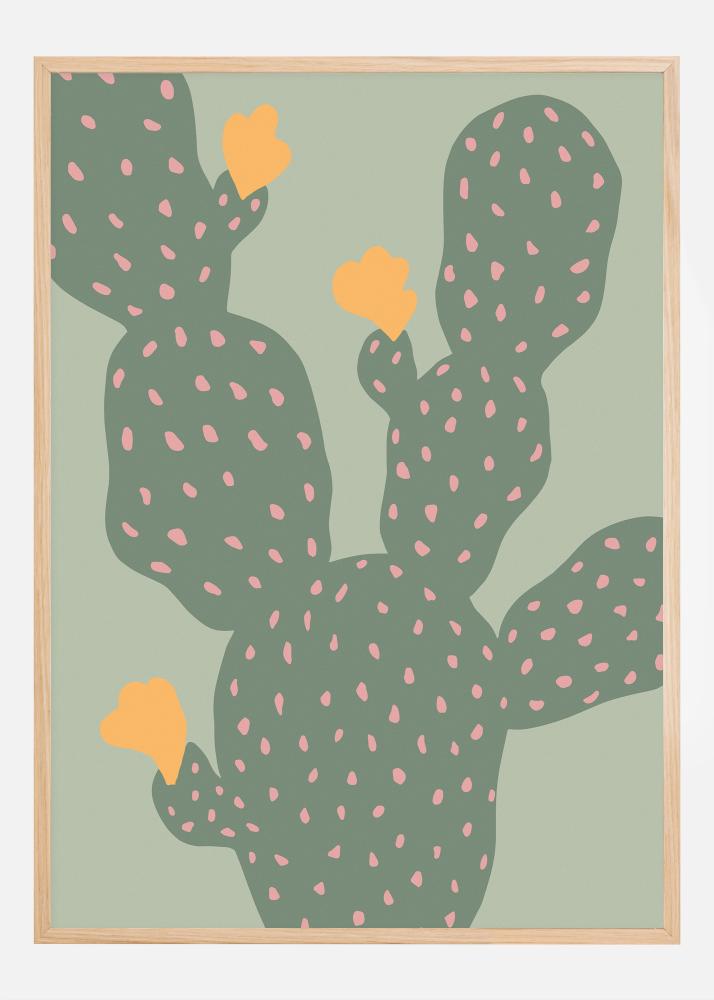 See mängukas ja sarmikas plakat kujutab kaktuse stiliseeritud pilti erksate aktsentidega. Oma pehme rohelise tausta ning roheliste kaktusekujude, roosade täppide ja kollaste lilledega pakub pilt värsket ja rõõmsat tunnet. See kunstiprint ühendab mängulisuse kaasaegse disainesteetikaga ja oleks imeline seinakaunistus lastetoas, valgusküllases köögis või loomingulises töökohas, mis vajab annust looduseinspireeritud huumorit ja värvi.
