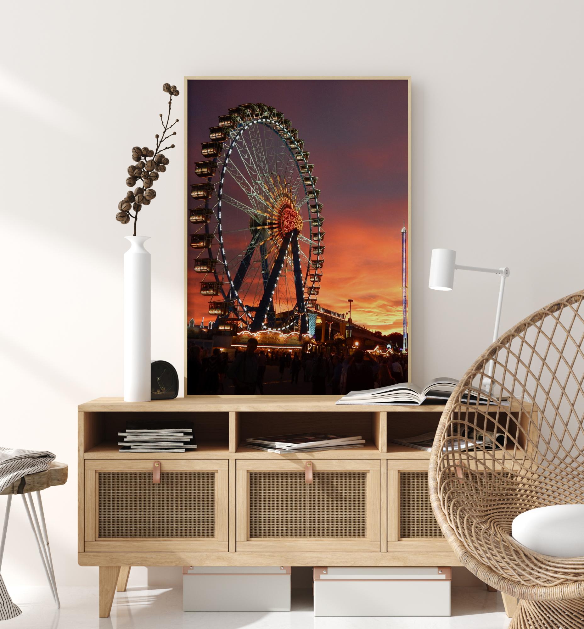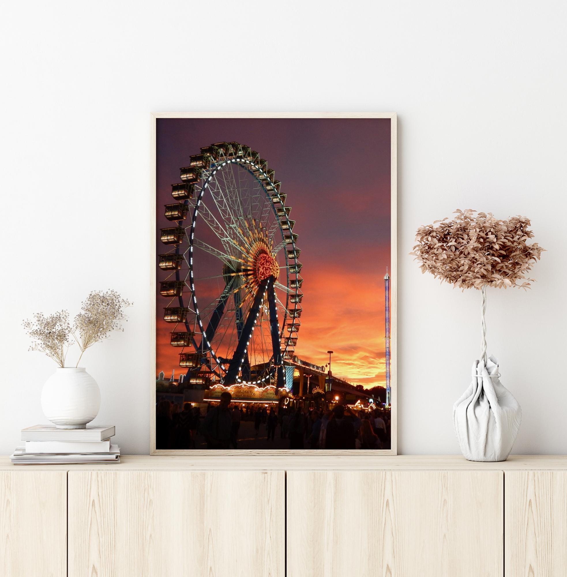 Imeline plakat öise vaaterattaga. Vasakul pool seisab ratas ja helendab hõõguva säraga. Allpool jälgivad rahvahulgad ratast, samal ajal kui päike loojub oranži ja lilla öötaeva suunas. Too oma seintele veidi öödraamat selle plakati abil.