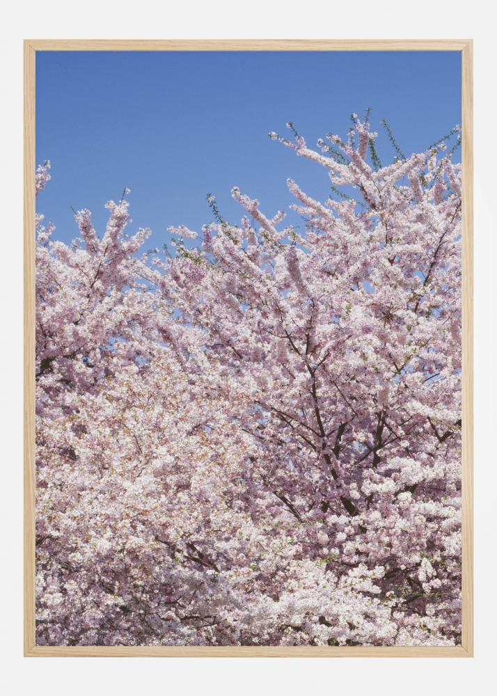 Loodusplakat imeliste kirsiõunapuudega, valgete õitega helesinise taeva taustal. Valged õied täidavad selle pildi ja pakuvad tugevat kontrasti taeva vastu. Riputa see pilt üles ja lase oma kodu looduse tunnet täis saada, kui näed seda teost oma seinal.