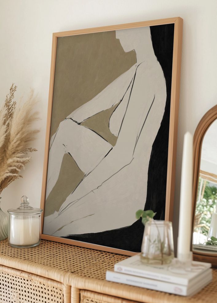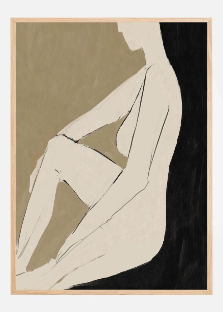 See elegantne plakat kujutab stiliseeritud keha istuvas asendis, tuues esile moodsa ja minimalistliku ilme. Lihtsustatud disain rõhutab pehmeid kurve, samas kui abstraktne stiil lisab kunstipärast muljet, mis sobib nii kaasaegsesse kui ka klassikalisse interjööri. Plakat on ideaalne täiendus sinu koju, kontorisse või galeriisse ning seda saab hõlpsasti kombineerida teiste printidega, et luua stiilne sein.