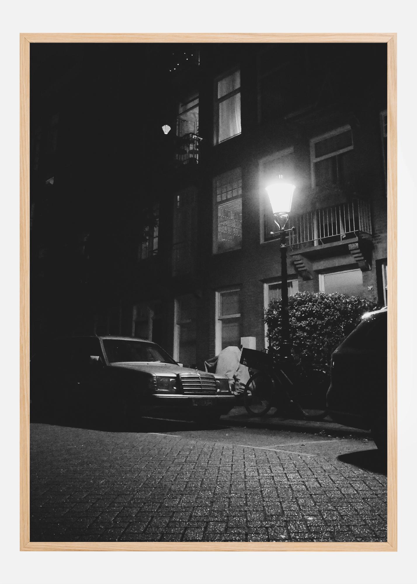 See haarav plakat annab aimu linnamelust, kui öö langeb. Üksildane tänavavalgustus valgustab kõnniteed ja pargitud autosid pehme, sooja valgusega. Motive on jäädvustatud mustvalges paletis, mis tõstab esile kontraste ja detaile selles vaikses linnavaates. See trükis on täiuslik rahu ja mõtiskluse tunde tekitamiseks igas ruumis, meenutades hetki linna muidu pulbitsevas tempos.