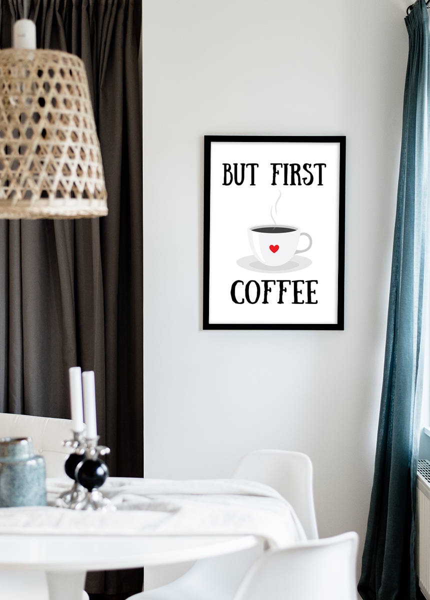 Plakat, millel on illustratsioon kohvitassist sõnumiga kohviarmastavale inimesele. Tassi peal oleva südamega armas motiiv on tore kingitus ja sobib hästi üles riputamiseks maalähedases või retrohõngulises köögis. Täiendage postrit raamina, mis sobib nii illustratsiooni kui ka muu sisustusega, et luua kodus terviklik tunne.