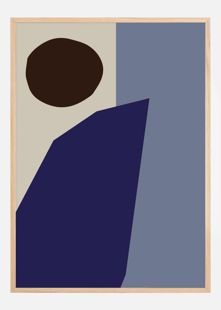 Elegantne plakat nurkade kujunditega plokivärvides. Tumeblue kujund jookseb üle pildi vasakult, samal ajal kui helesinine ristkülikukujund jagab pilti. Üleval on must ring valgel taustal. Pane seda pilti tähele iga hommik, kui see ripub sinu esikus.