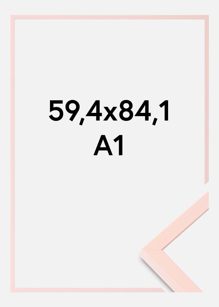 Anna oma plakatitele ja kunstiteostele mänguline puudutus selle võluva roosa pildiraamiga suuruses 59,4x84,1 cm (A1). Kitsas ja elegantne raamilatt, mille laius on 13,5 mm, raamib su motiivi ilma domineerimata. Diskreetse sügavusega 22,5 mm loob pildiraam nauditava raamistuse ja stiilse mulje seinale.
