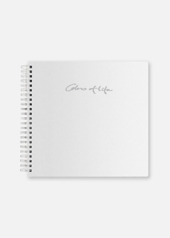 Spiraalalbum mõõtudega 24x23 cm, millel on 24 happeta valget lehte, valmis mälestustega täitmiseks! Albumi esiküljel on kiri "Colors of life" hõbedaselt.