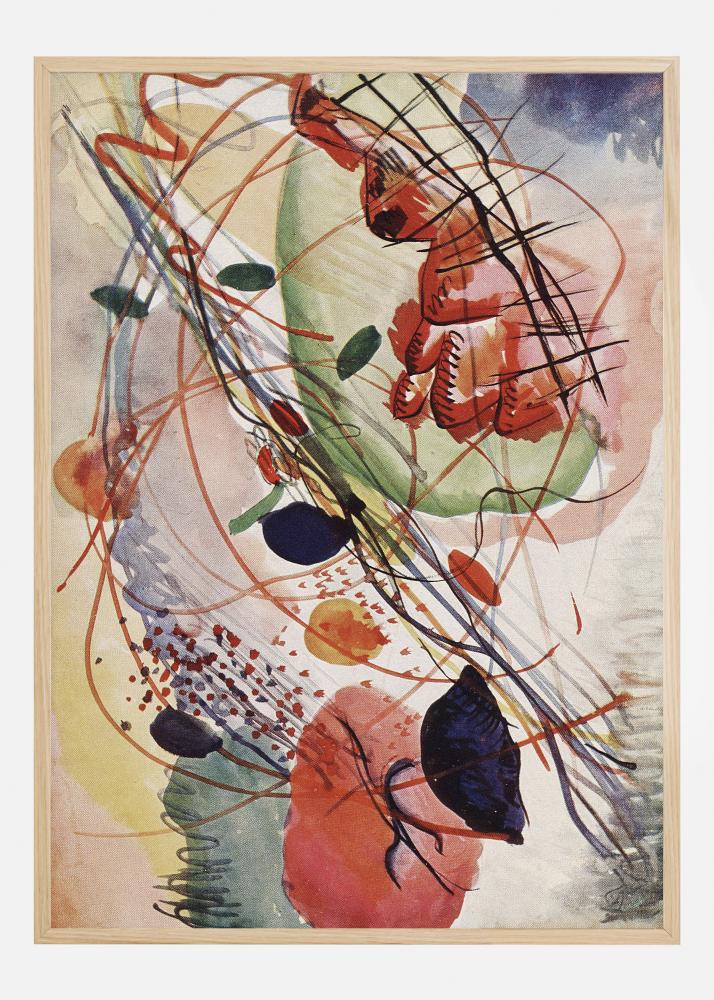 Elav plakat, mis on täis abstraktseid värve ja kujundeid, luues dramaatilise, peaaegu kaootilise pildi. Suured värvilaigud, värvilised täpid ja triibulised jooned teevad sellest dramaatilise teose, kui pilk rändab üle pildi, et avastada, mis toimub. Sa saad draama tunde, kui riputad selle teose esikusse.