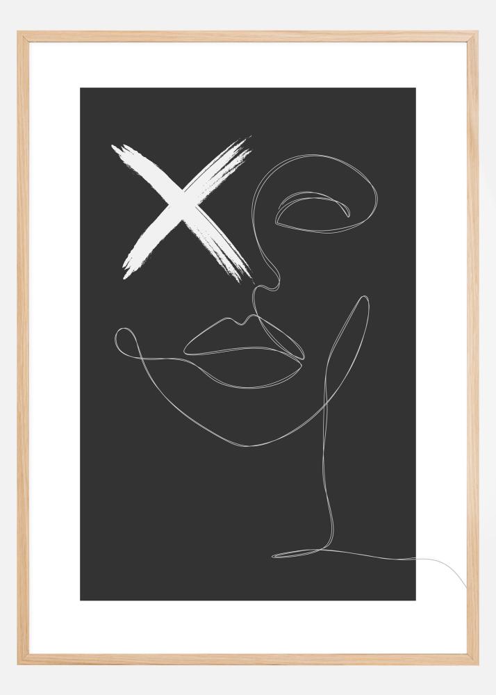 Abstraktne plakat näoga, mis on joonistatud õhukeste valgete joontega mustal taustal. Valged jooned on kõik ühendatud, et luua ühtlases liikumises nägu. Seal, kus peaks olema silm, on dramaatiline valge rist. Mida see tähendab? Riputa see teos kodus kesksele kohale, et alustada kunstivestlust.