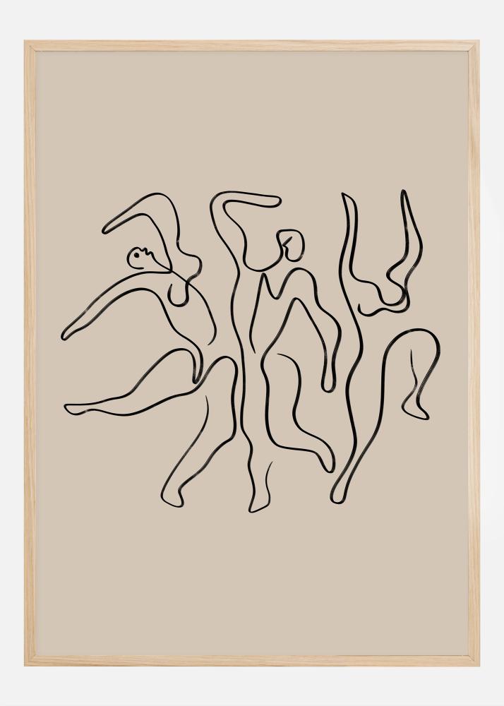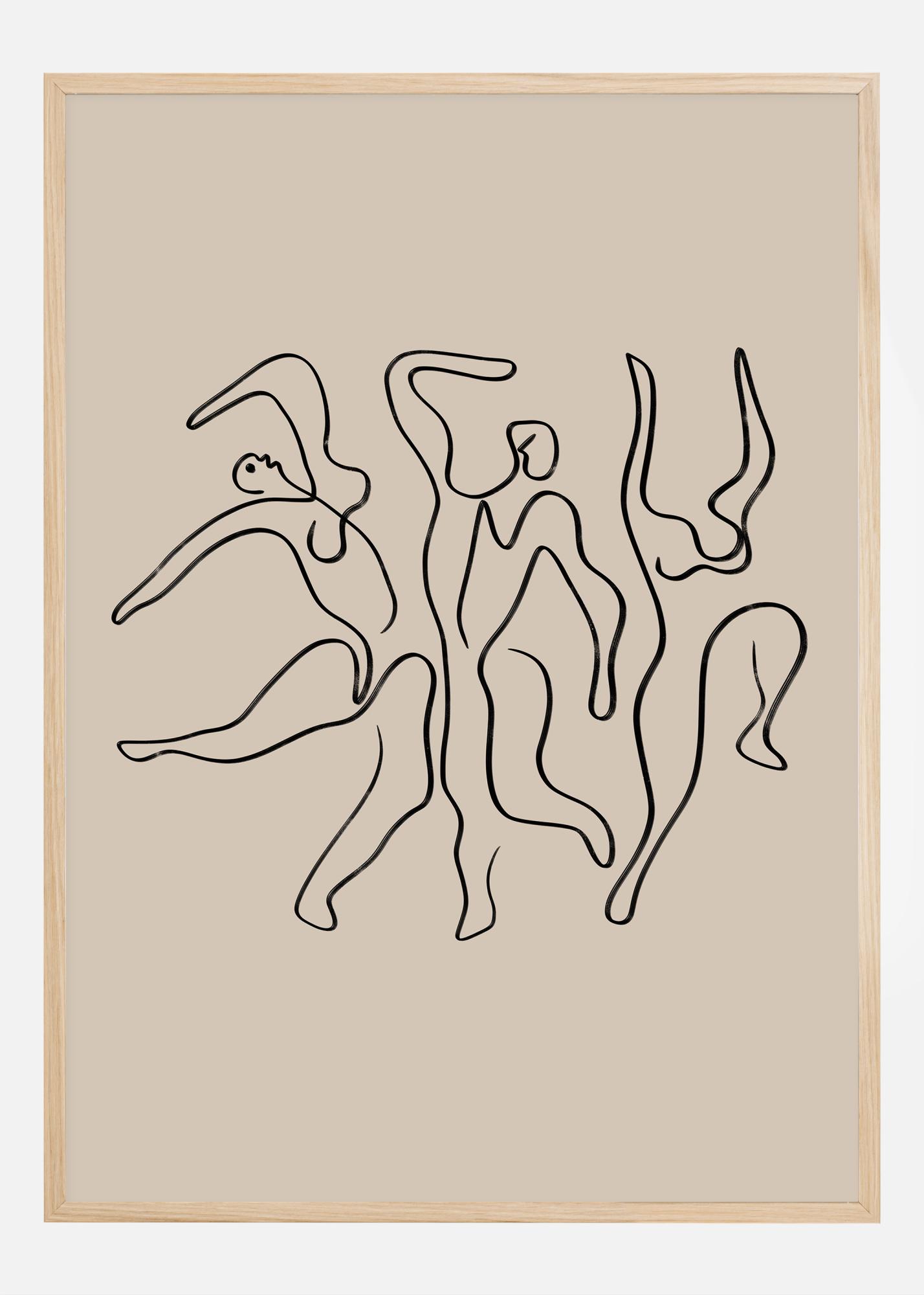 See kunstiposter esitleb abstraktsete figuuride sarja, mis oma voolavate joonte kaudu kujutab liikumise ja tantsu tunnet. Lihtne, kuid väljendusrikas must illustratsioon rahuliku beeži tausta vastu pakub minimalistlikku, kuid elavat väljendust. Niisugune motiiv on ideaalne neile, kes hindavad peeneid, kuid võimsaid kunstiteoseid, mis inspireerivad liikumist ja vabadust.
