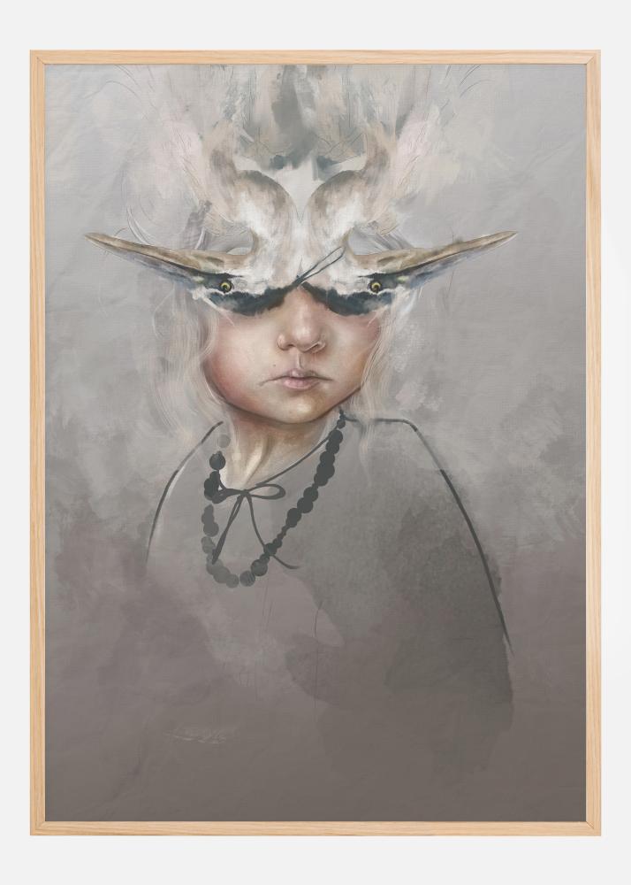 Kõhedusttekitav plakat suitsuga kaetud inimesest. Pead katab müts, mis tundub olevat põlemas ja näeb välja nagu kaks tagurpidi lindu või kolju. Silmad on salapäraselt varjutatud ja isik õhkab müstilist rahu. Riputa see teos oma koju ja luba veelgi rohkem tõlgendusi.