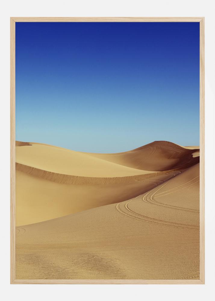 Ere poster elavate kollaste luidetega, millel on kaks kõvera kujuga rööpajälge. Heleluited on rõhutatud taeva põneva sinisusega. Kaota end selle imelise teosega oma seinal avarusse.
