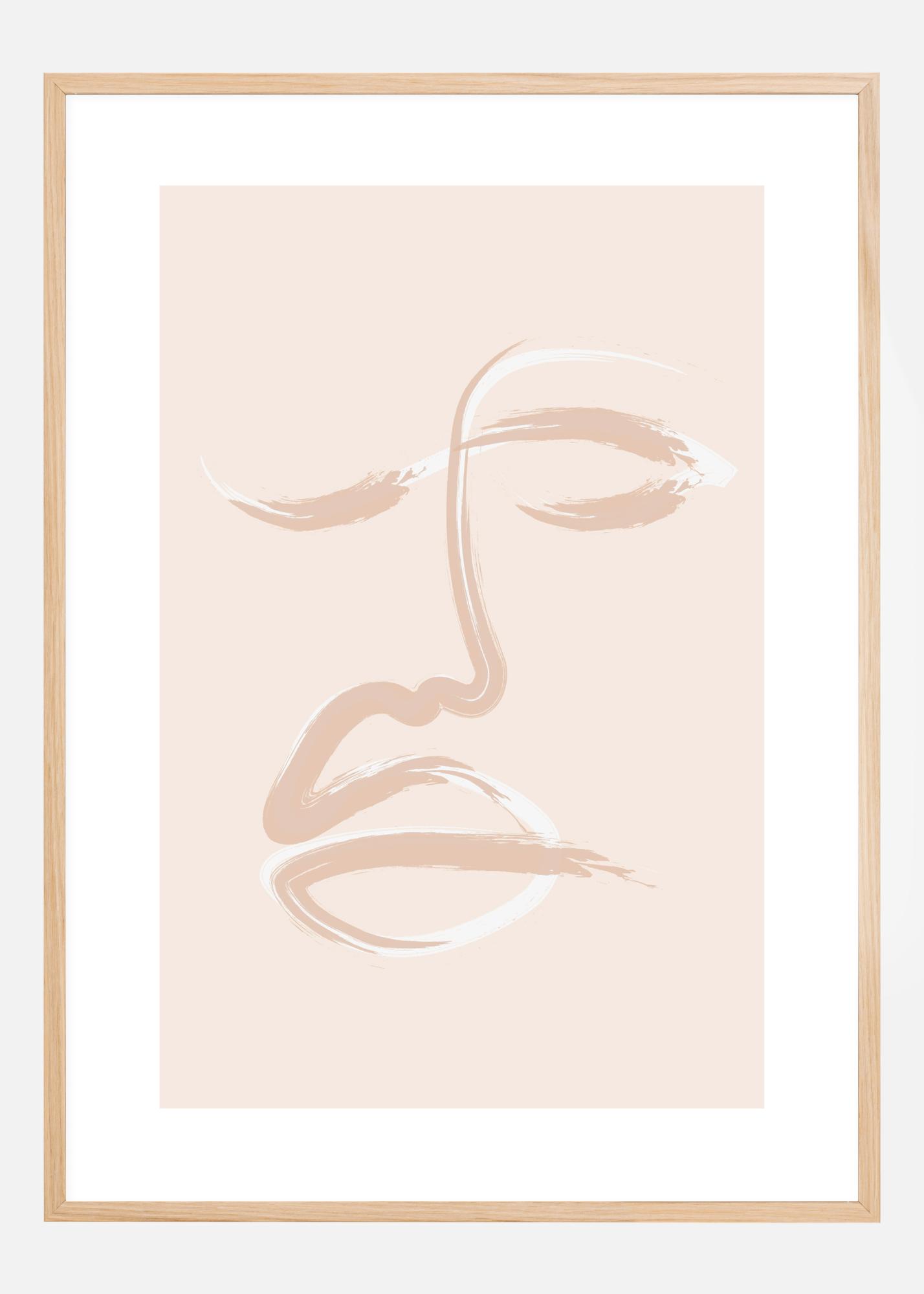 Abstraktne portreepilt, millel on julged roosad pintslitõmbed, mis loovad näo. Üksik pintslitõmme keerleb üle lehe, luues nina ja suu. Silmad on tehtud viisil, mis on peaaegu kui silmapilgutus. Valge raam võimaldab sellel esile tõusta pastelltoonides seinal.