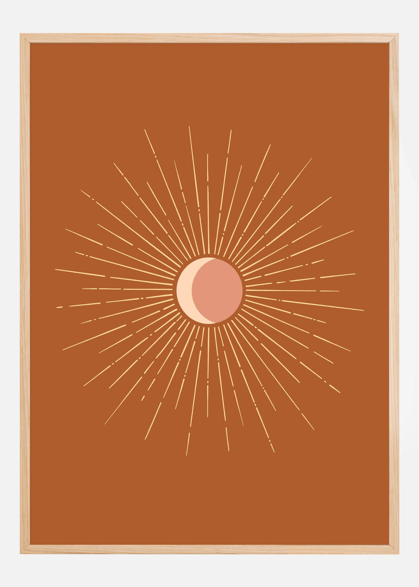 See minimalistlik ja elegantselt kujundatud plakat abstraktse päikesevarjutusega saab igal seinal stiilseks ja modernseks aktsendiks. Selle puhaste joonte ja särava motiiviga sügaval terrakotataustal esindab see trükk täiuslikku lihtsuse ja rafineerituse segu. Kujunduse keskne element, ring koos joonte plahvatusega, sümboliseerib valgust ja energiat ning lisab ruumile dünaamilise efekti.