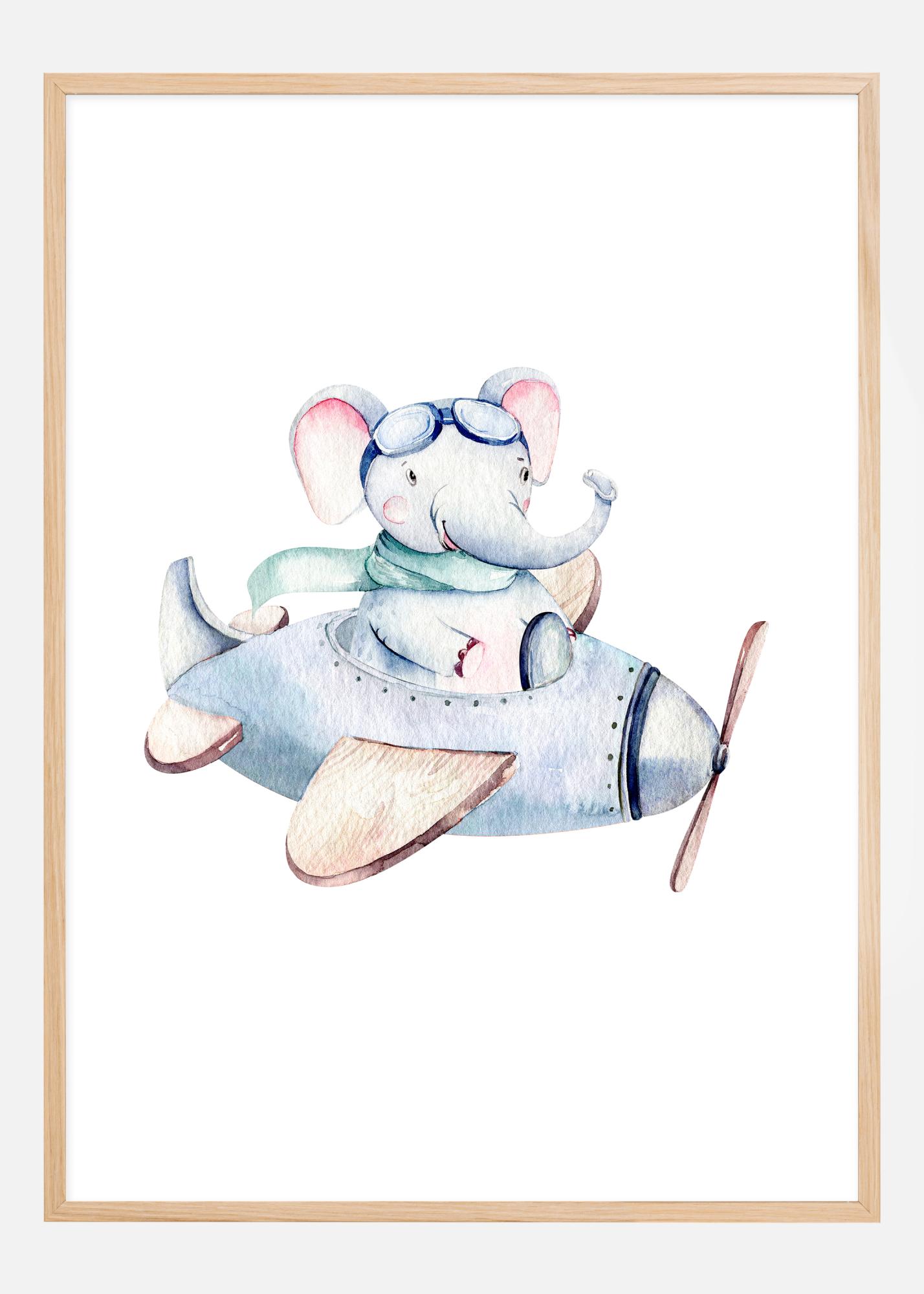 Püüa kinni kujutluse lend selle võluva plakatiga, mis kujutab seikluslikku väikest elevanti vintage-lennukis taevasse tõusmas. Ideaalne, et äratada seikluste unistusi noortes ja noorteks jäänud südameis, see print pakub imelist mängulisuse ja nostalgiat kombineerimist. Sinakas tooniga illustratsioon, mida täiendab elevandi rõõmsameelne naeratus ja piloodiprillid, kutsub esile vaateid taevalikele seiklustele ja avastusretkedele.