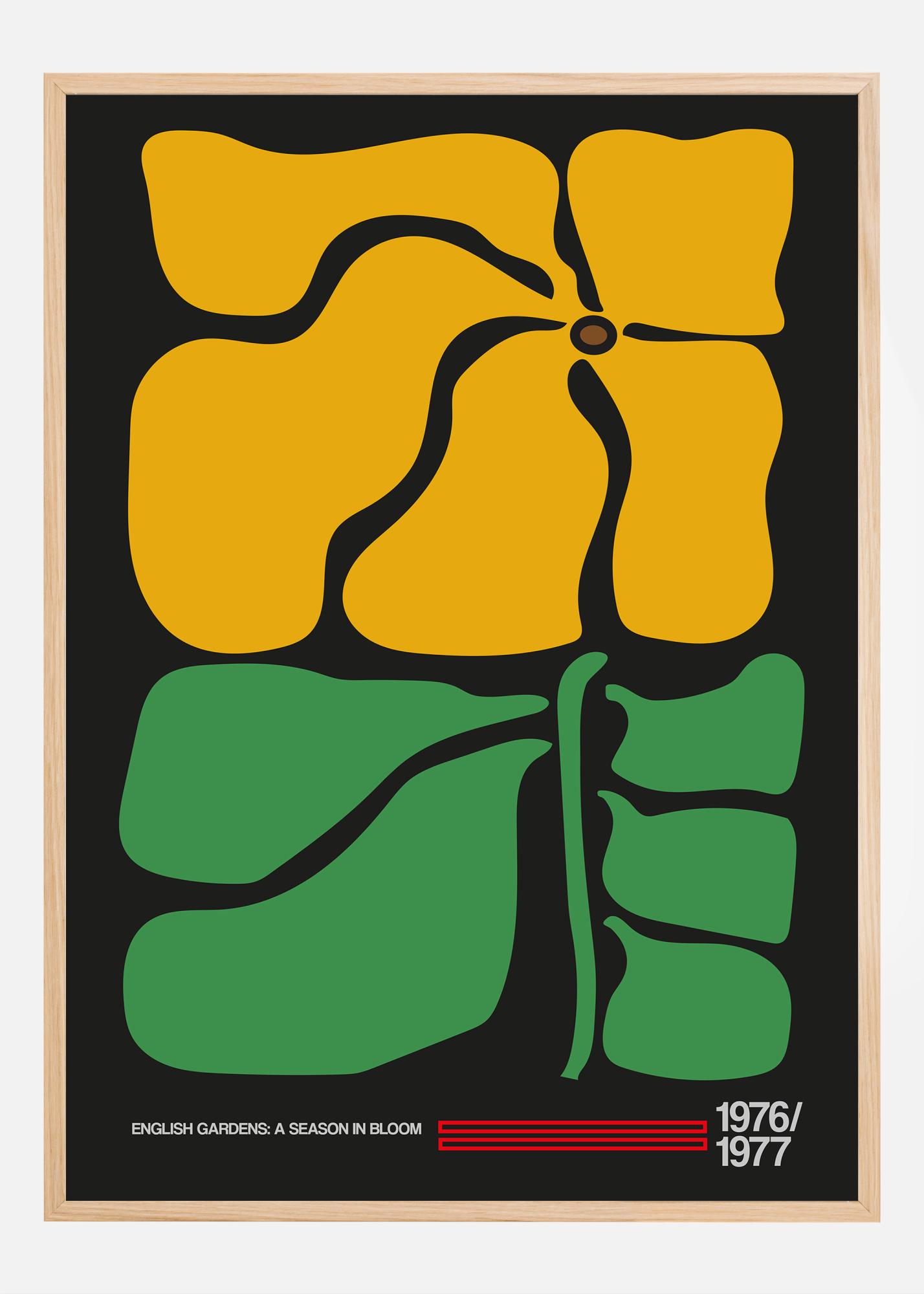 See plakat on loodusimedest stiilne ja kontseptuaalne tõlgendus ning tekst '1976/1977' tekitab ajaloolise või korduva sündmuse tunde, nagu iga-aastane õitsemine või eriline näitus. Disain on minimalistlik, kuid väljendusrikas, kasutades geomeetrilisi kujundeid, et esitada lill ja selle lehed peaaegu abstraktsel viisil. See on ideaalne valik kõigile, kes hindavad kunsti, mis püüab looduse olemust ilma seda sõna otseses mõttes kujutamata. See plakat kutsub kindlasti esile vestlusi ja imetlust igas ruumis, kus seda näidatakse.
