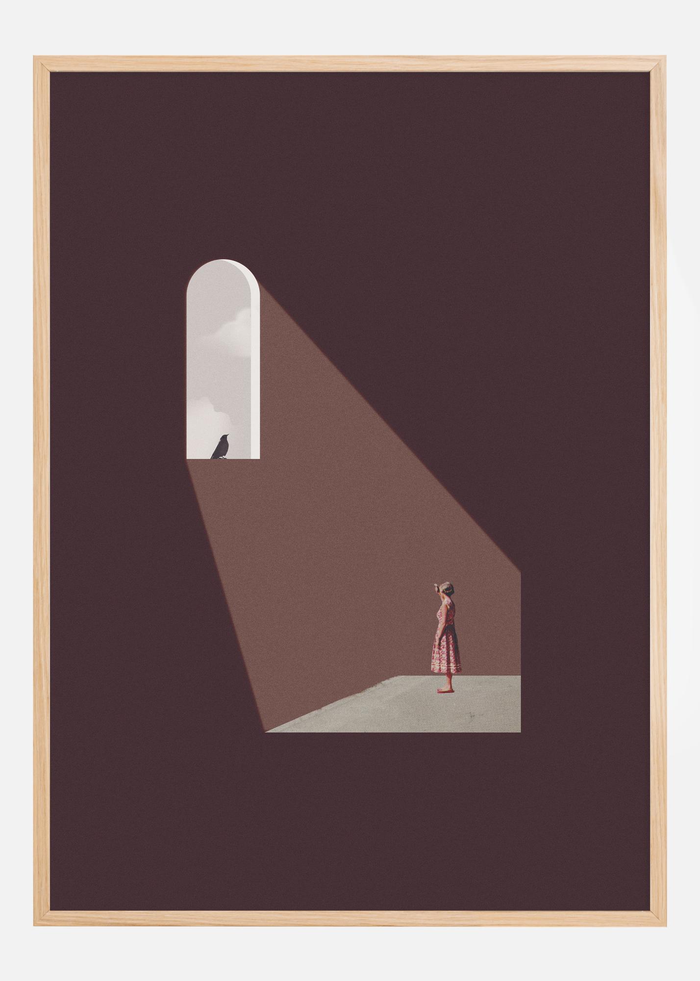 See minimalistlik postitus püüab kinni vaikse hetke järelemõtlemisest. Üksik kuju seisab valgusvihus, mis siseneb aknast, sümboliseerides valgustatust ja mõtisklust. Pilti iseloomustavad pehmed pruunid ja beežid toonid, mis loovad sooja ja kutsuva õhkkonna.