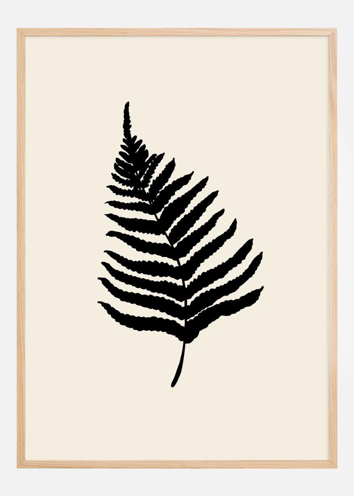 Selle minimalistliku ja stiilse plakati peal on kujutatud sõnajalalehe siluett heleda tausta vastu, luues tugeva graafilise efekti. Lihtne, kuid väljendusrikas must motiiv kontrastib kaunilt kreemja taustaga, andes pildile orgaanilise tunde. See printimine on austusavaldus looduse lihtsale ilule ja selle igavesele võlule.