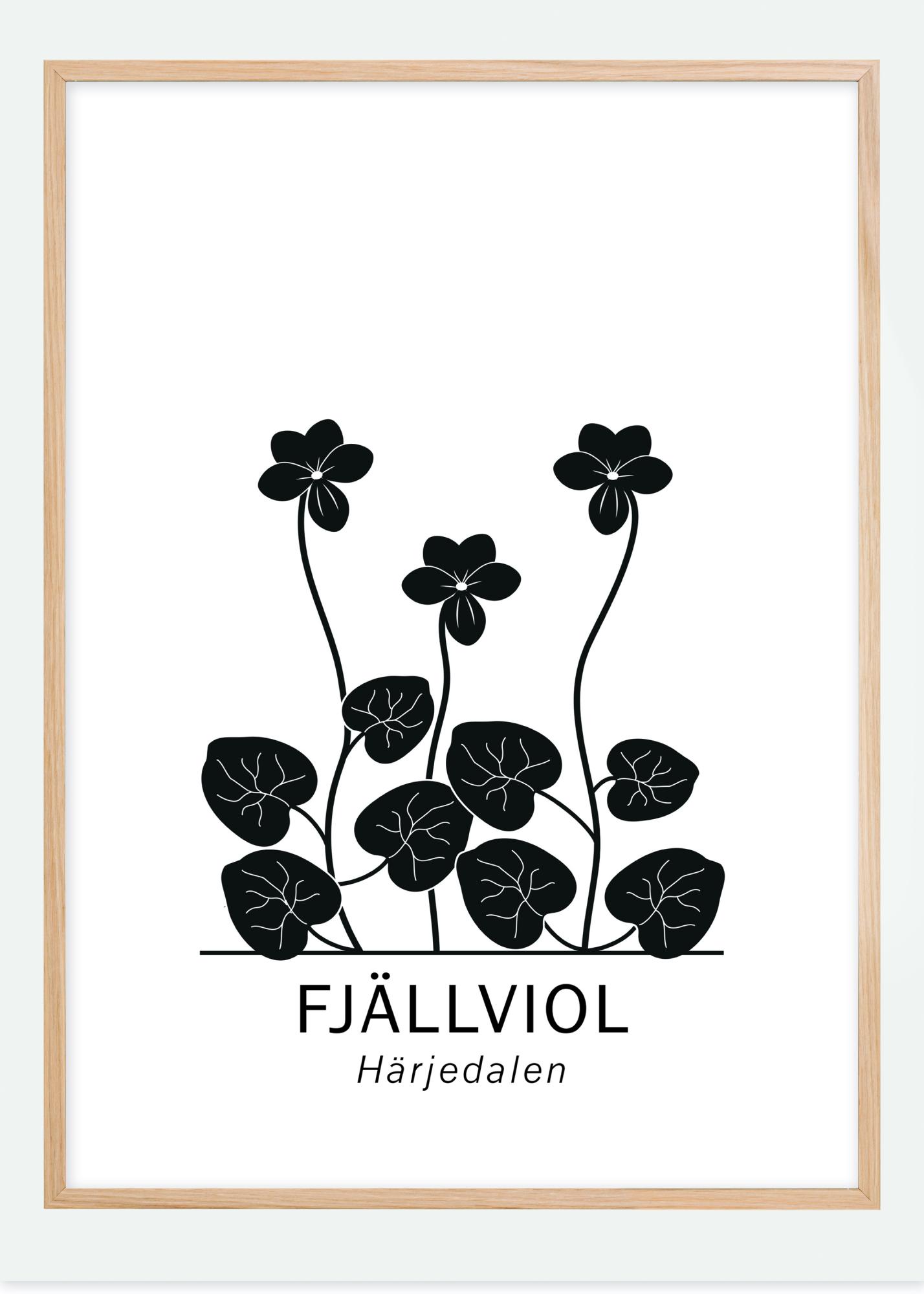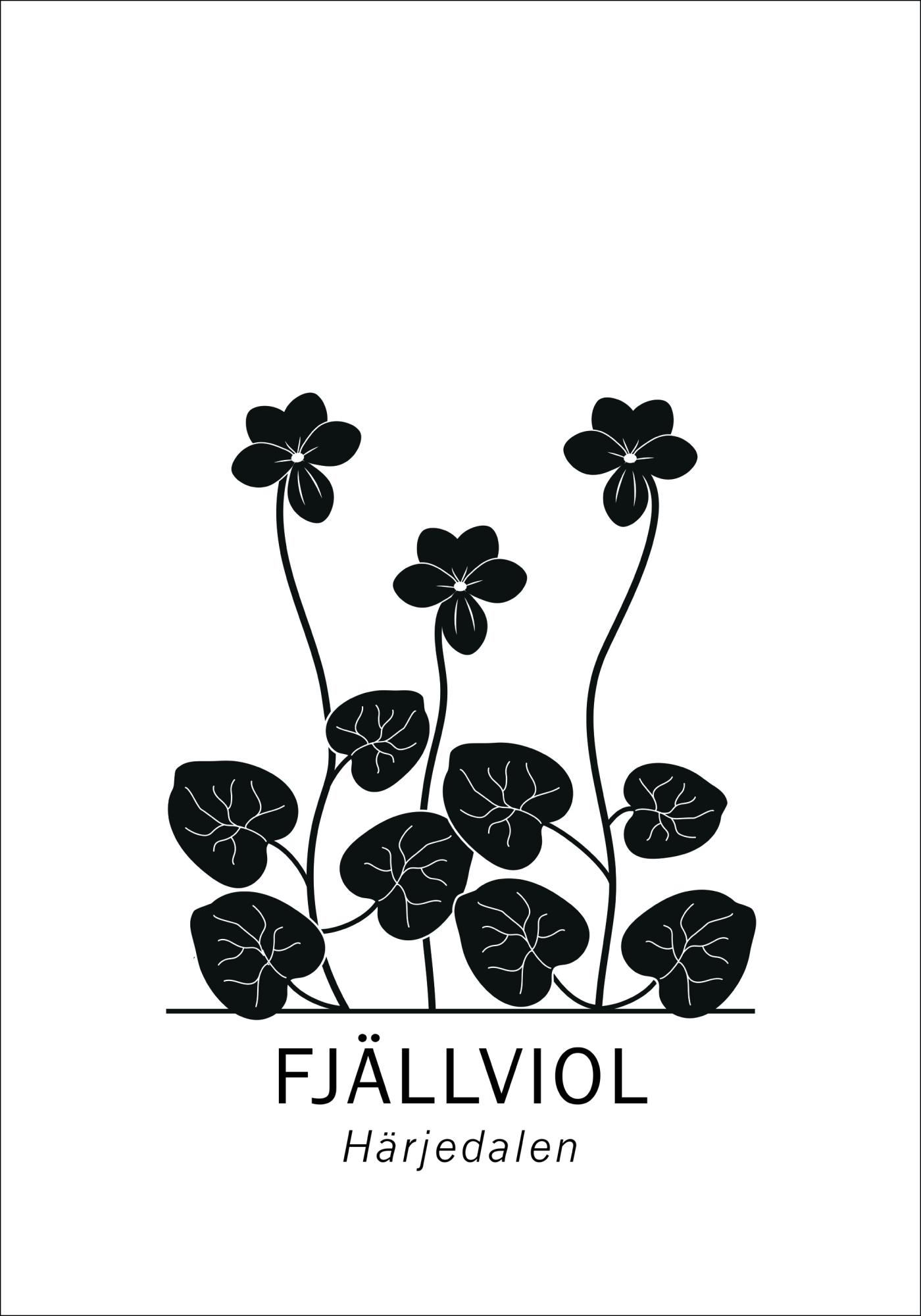 Lihtne poster fjällvioleriga, trükitud mustaga valgel taustal. Selle posteri lihtne elegants aitab silma pildis ringi juhtida. Must kiri - Fjällviol, Härjedalen - juhib pilgu kolme erineva lille juurde, mis tantsivad koos keskel. Õnneks riputa see imeline pilt oma seinale.