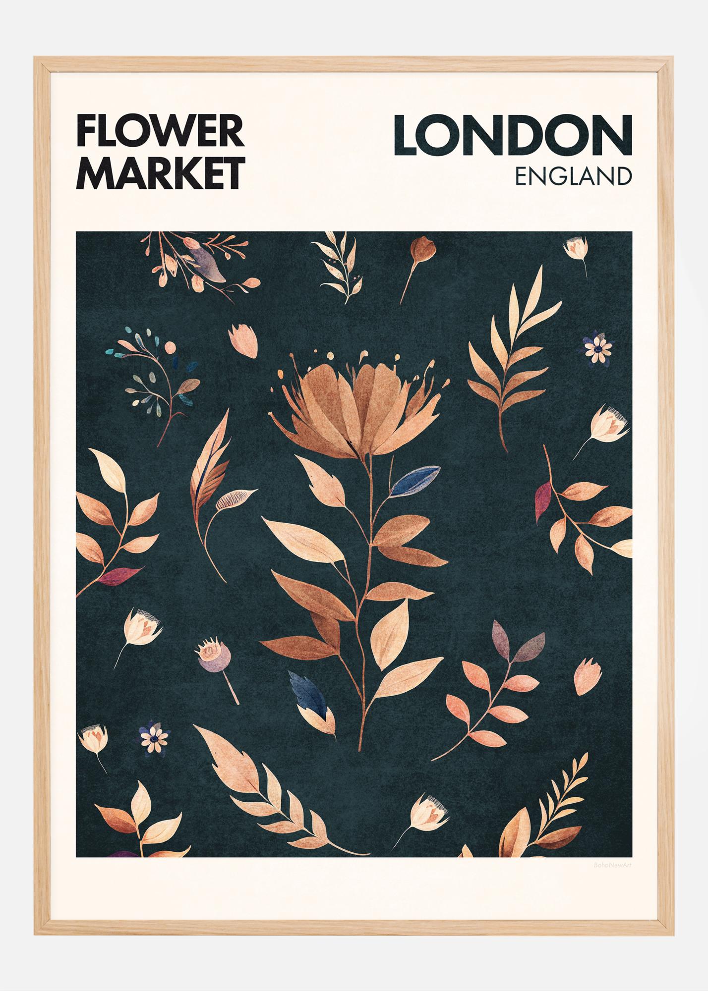 See lummav plakat kujutab lillede elegantsi Londoni kuulsalt lillelturult. Värvikas taimeelu sümfoonia, mis õitseb Inglismaa südames, esitatakse botaanilise illustratsiooniga, mis kujutab lillede ja lehtede kogumit. Disain õhkab klassikalise Briti võlu ja looduse ajatute ilu tunnet.