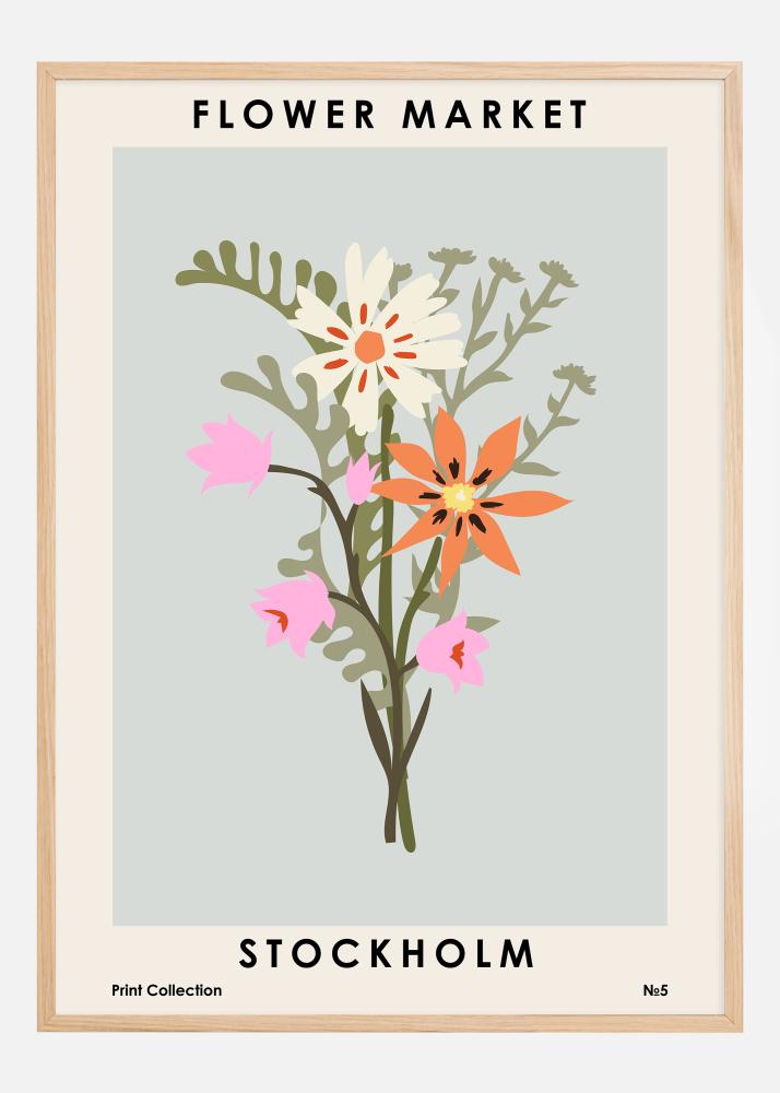 See plakat kujutab Stockholmi lilleturgu, värske ja looduslähedase disainiga, mis tabab linna pulbitsevat ilu ja rohelust. Sellel pildil harmoneerub valguse mäng õite ja lehestiku vahel, mis annab elu õitsvatele motiividele, mis on illustreeritud valge, roosa ja oranži varjundites, õrnal sinakashallil taustal. See on austusavaldus Skandinaavia pealinna armastusele looduse vastu ja tema võimele ühendada traditsioon kaasaegse disainiga.