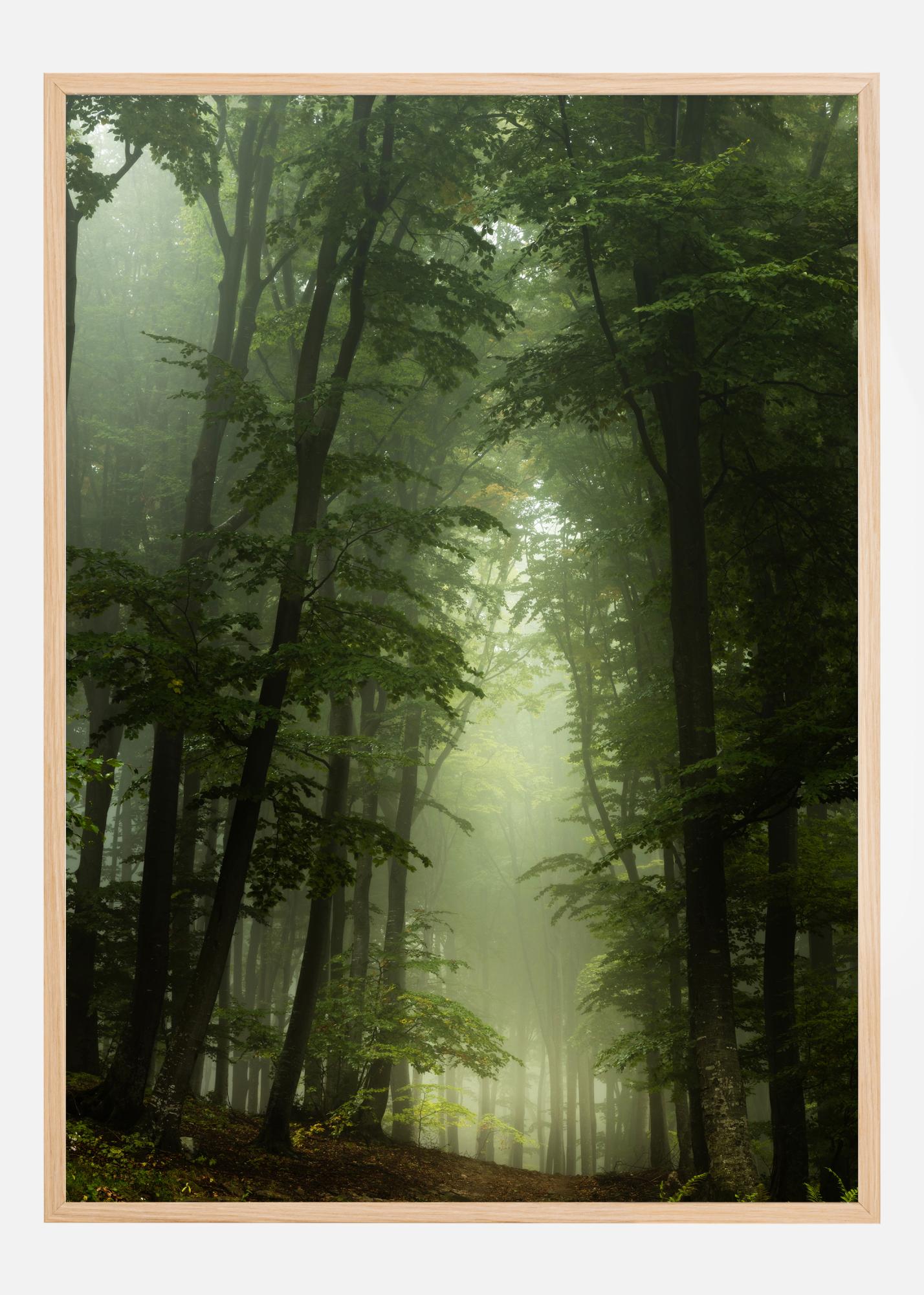 See õhkkondlik poster kutsub sind kaotama end udu sisse mässitud metsa, kus iga puu näib jutustavat oma lugu. Pehme udu, mis ümbritseb puude jämedaid tüvesid ja elavat rohelust, loob unenäolise stseeni, mis tundub olevat pärit teisest maailmast. Õrn valgus, mis läbi lehtede paistab, lisab müstika ja vaikuse tunde.