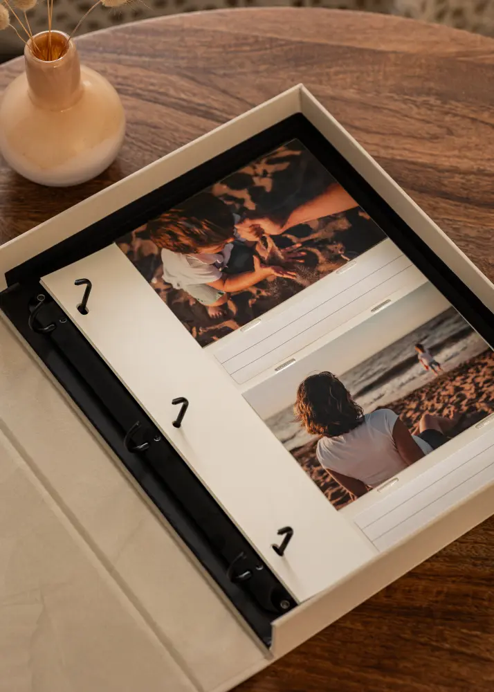 Igal lehel on ruumi kokku 4 pildile (2 kummalgi poolel) ning iga pildi juures on kirjutusväli, mis võimaldab lisada isiklikke märkmeid või kuupäevi, et meenutada erilisi hetki.